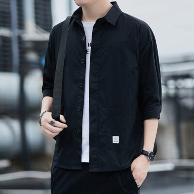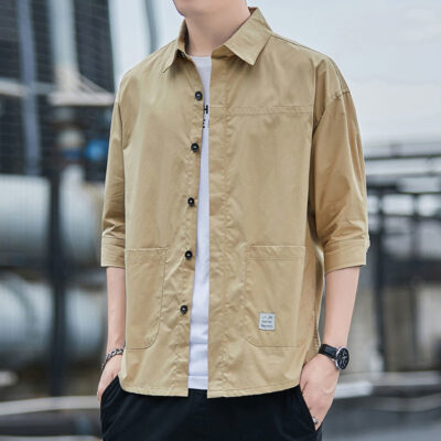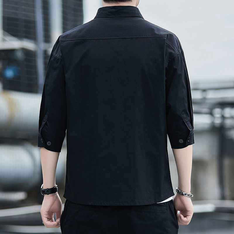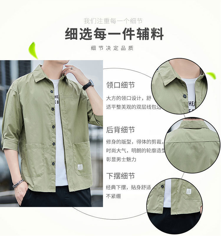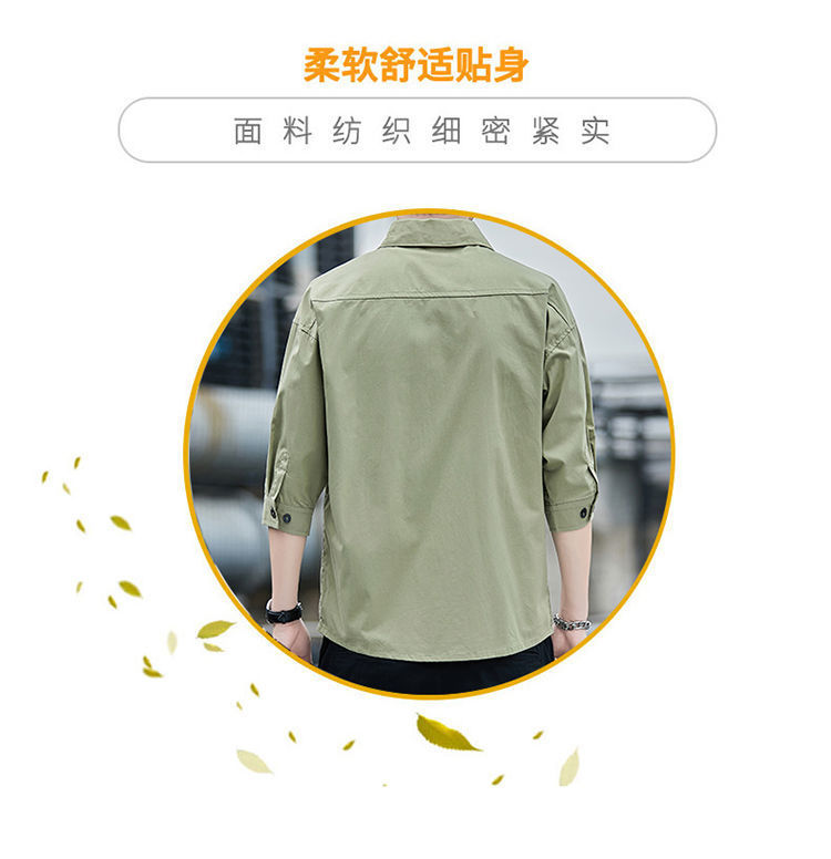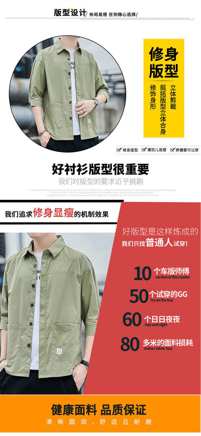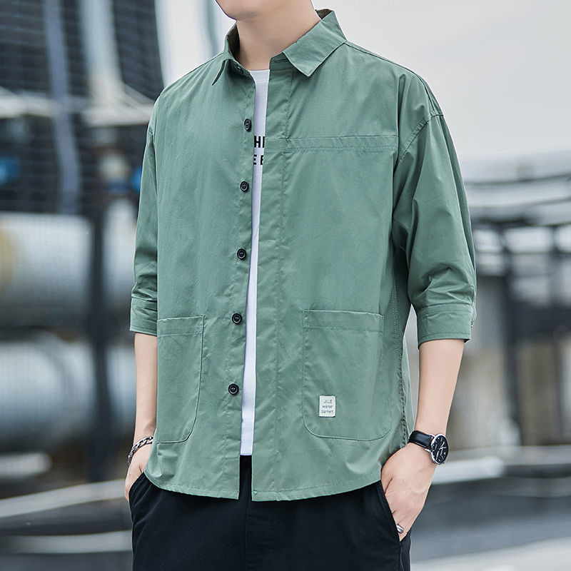 Áo sơ mi nam ba phần tư ngắn tay mùa hè phần mỏng hợp thời trang tất cả các trận đấu áo sơ mi cotton dáng rộng áo khoác dụng cụ