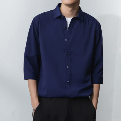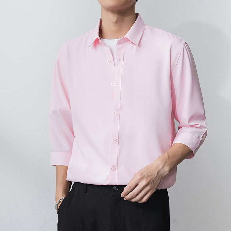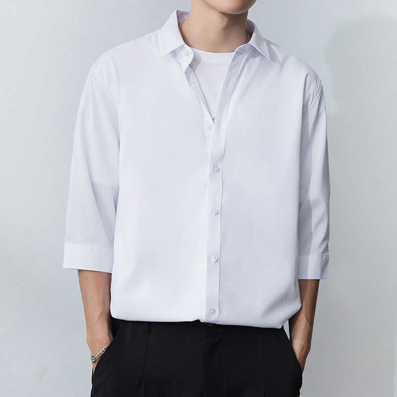 Áo Sơ Mi Nam Ba Phần Tư Tay Rủ Mùa Hè Rời Đồng Màu Áo Sơ Mi Lụa Băng Xu Hướng Thời Trang Áo Sơ Mi Nam