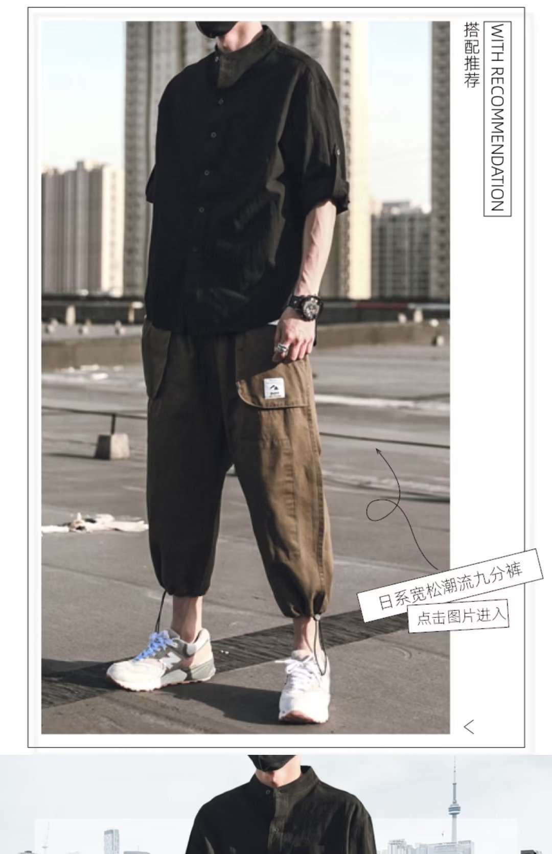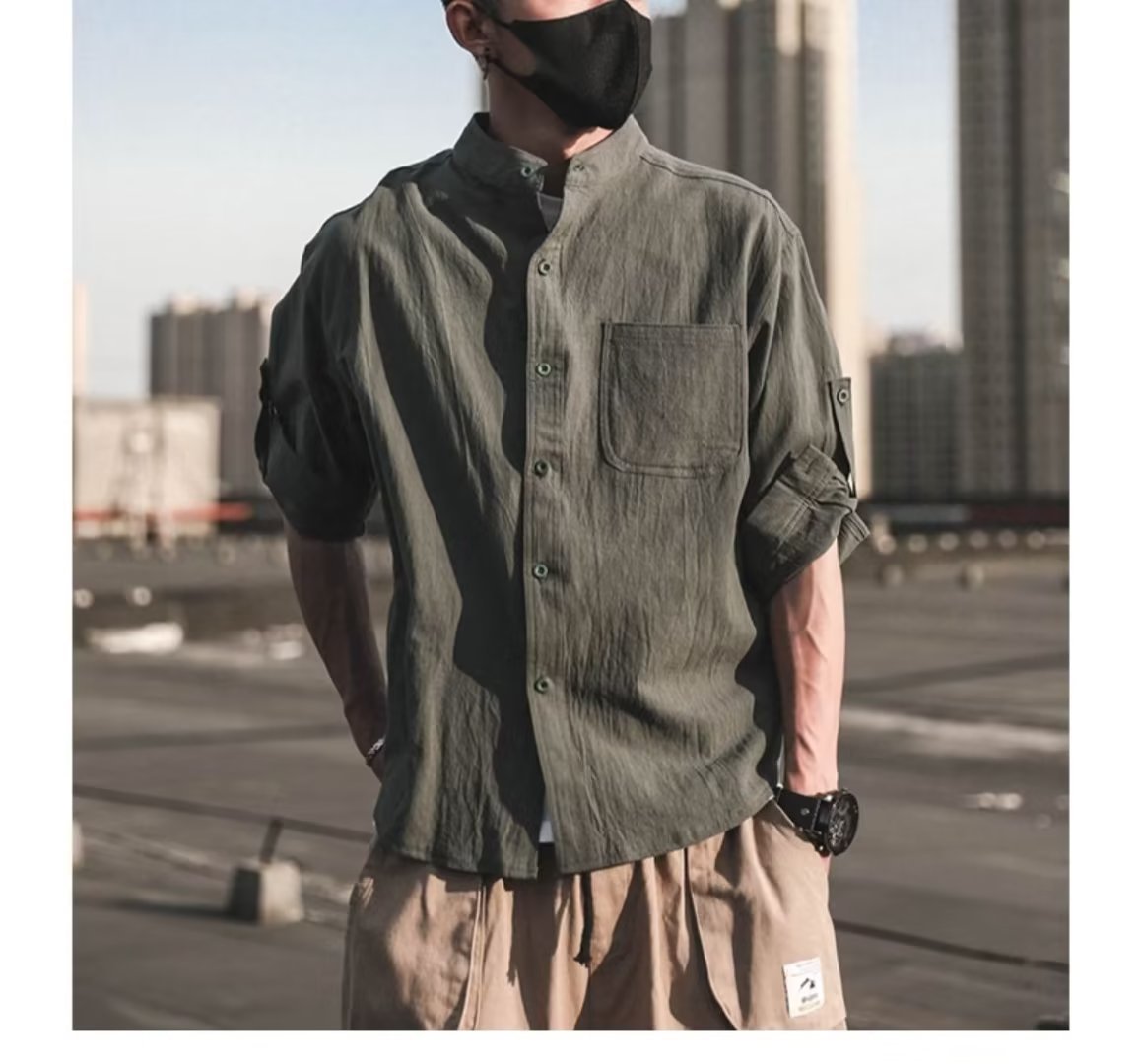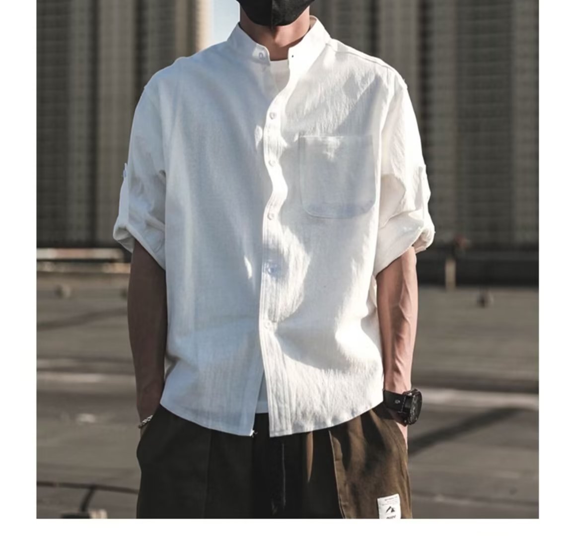 Áo sơ mi nam cổ điển cảm giác tuổi rộng rãi giản dị ba phần tư tay áo sơ mi phong cách Hồng Kông ins xu hướng thích hợp văn học thanh niên áo khoác