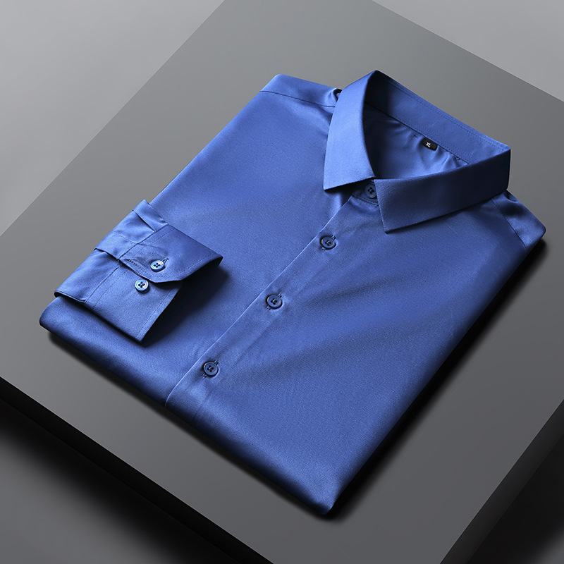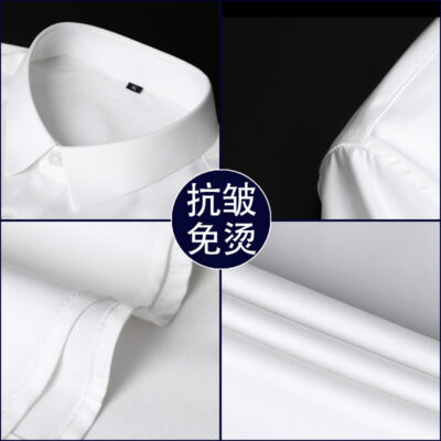Áo sơ mi nam công sở không ủi chống nhăn cổ vuông phiên bản Hàn Quốc thun ôm công sở áo sơ mi nam dài tay