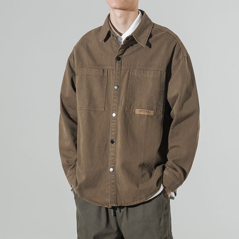 Áo sơ mi nam công trường giản dị phong cách retro của Mỹ Áo khoác mùa xuân và mùa thu 2023 công trường xây dựng thương hiệu áo sơ mi nam dài tay phong cách cổ điển