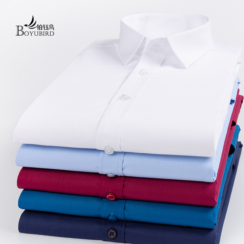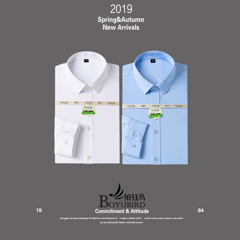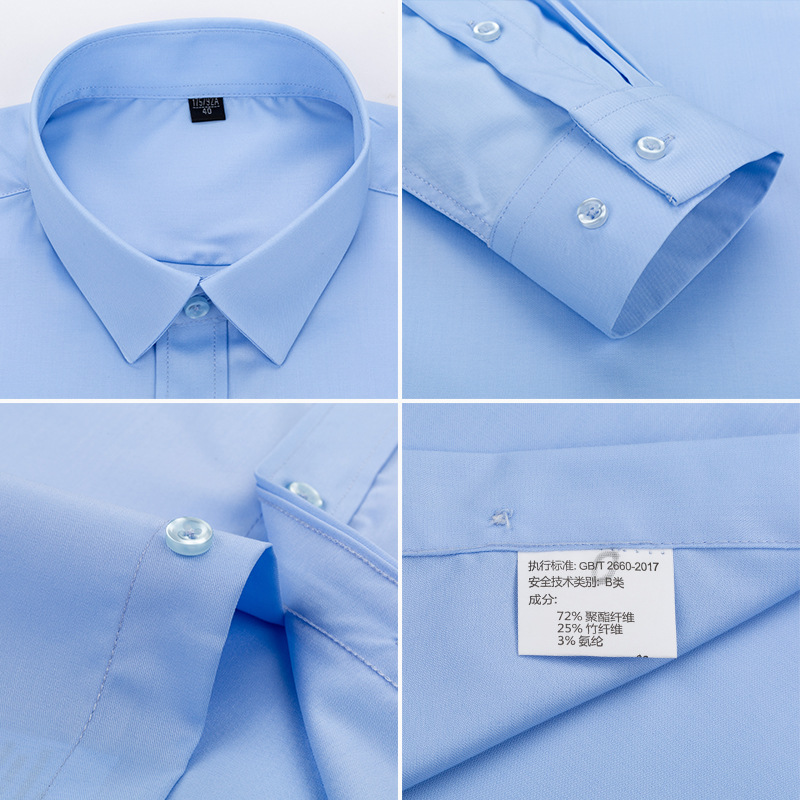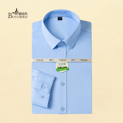 Áo sơ mi nam dài tay bằng sợi tre phiên bản Hàn Quốc tự trồng kinh doanh công sở bình thường áo sơ mi trắng cổ yếm màu trơn