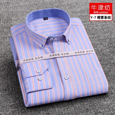 Áo sơ mi nam dài tay không cần ủi, thường ngày của người Khmer, áo sơ mi nam dài tay chống nhăn, không cần chăm sóc, phiên bản Hàn Quốc, áo sơ mi kẻ sọc mỏng vừa vặn