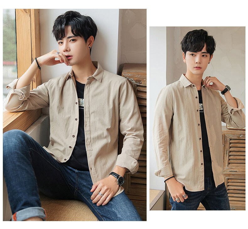 Áo sơ mi nam dài tay mùa xuân hè 2023 thương hiệu thời trang mới áo khoác giản dị đẹp trai phiên bản Hàn Quốc áo sơ mi cotton nam sành điệu