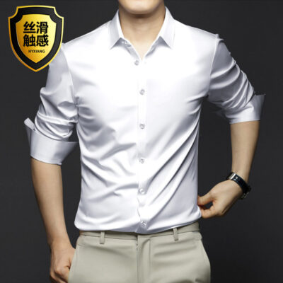 Áo sơ mi nam dài tay mùa xuân và mùa hè chống nhăn và không ủi chuyên nghiệp mặc trang trọng hợp thời trang kinh doanh cao cấp áo sơ mi lụa băng màu đen áo sơ mi inch