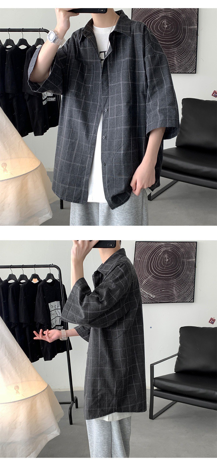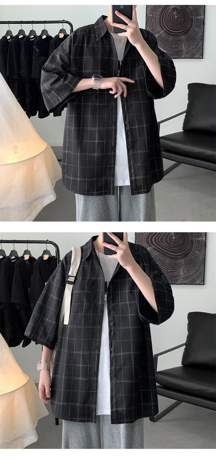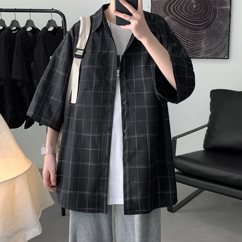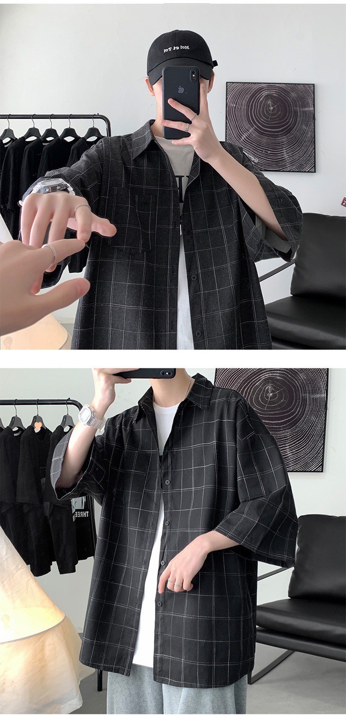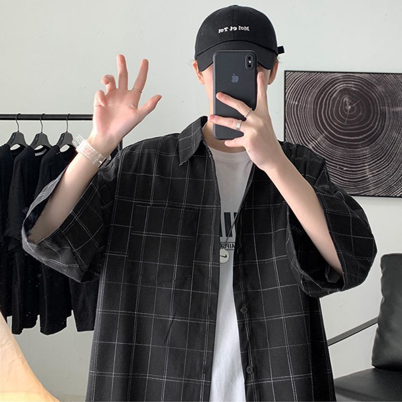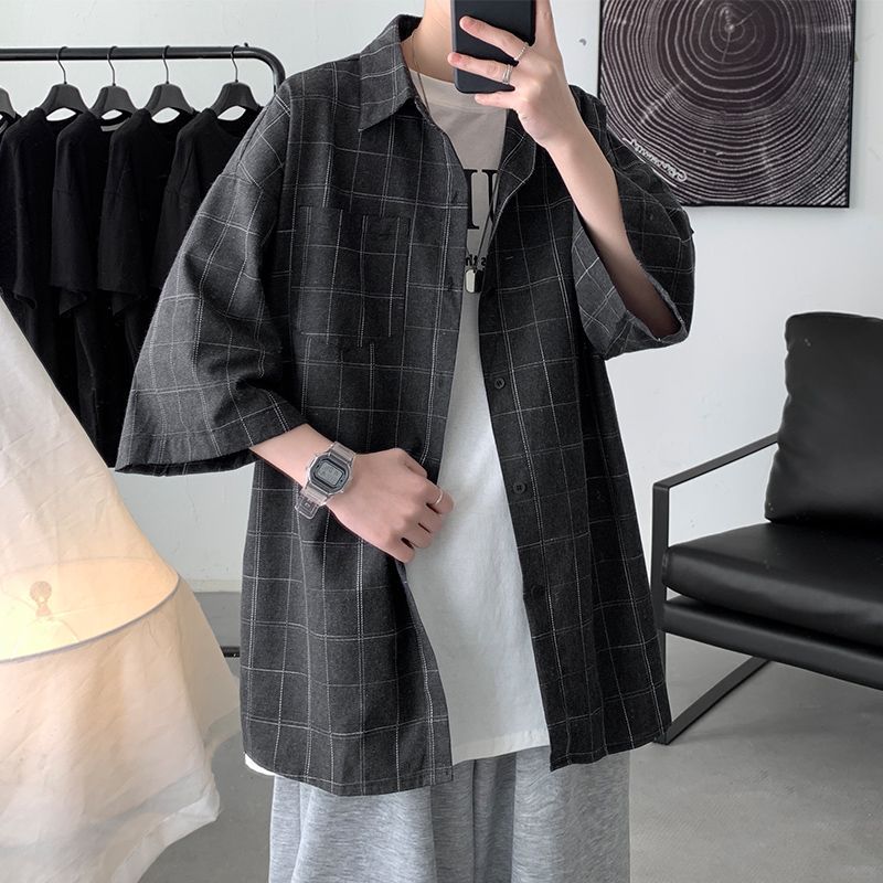 Áo sơ mi nam đẹp trai hợp thời trang áo sơ mi kẻ sọc đẹp trai mùa hè áo khoác nam ngắn tay quần áo bé trai mùa hè