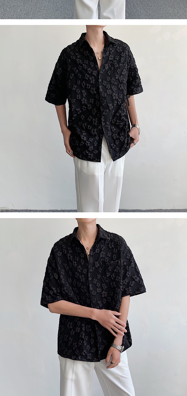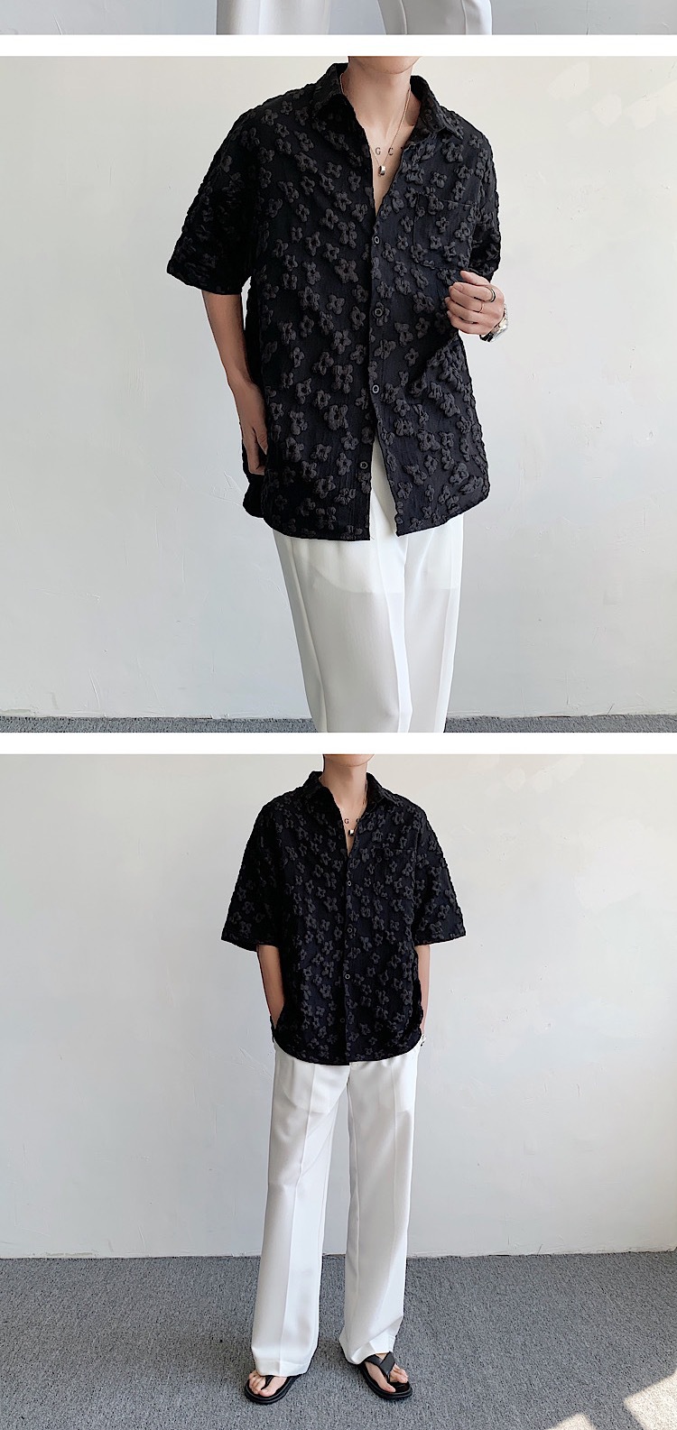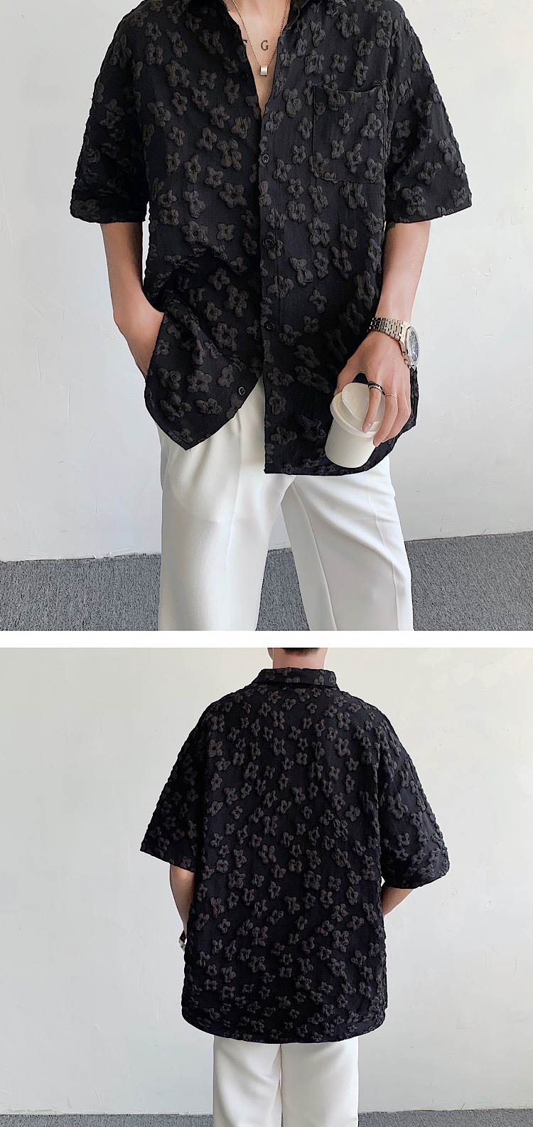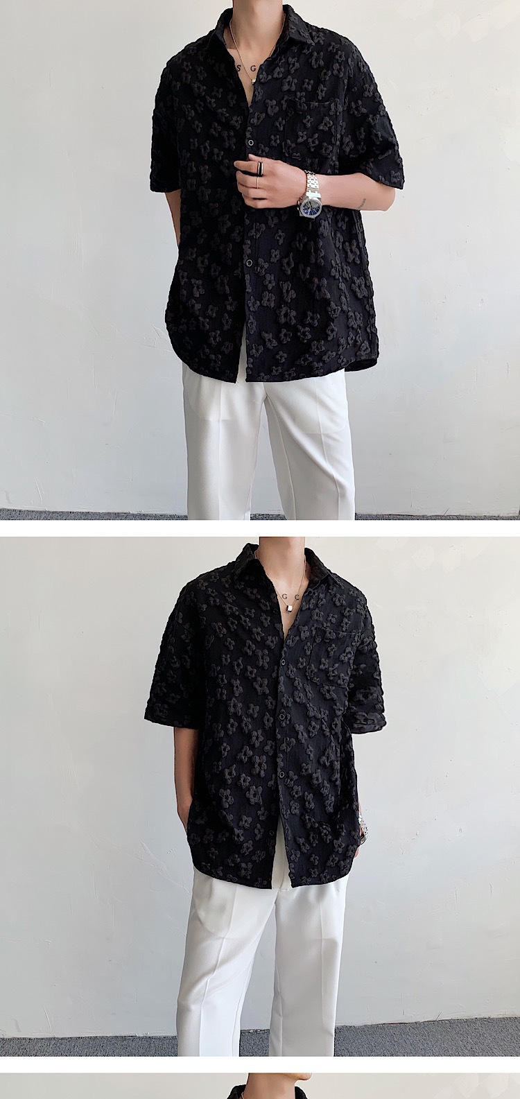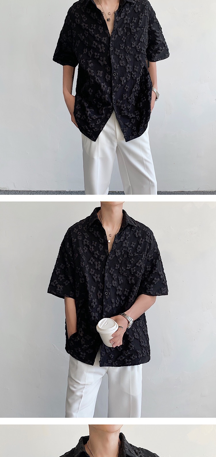 Áo sơ mi nam hoa nổi ba chiều thế hệ 2023 mùa hè tiết chế tối phong cách thô lỗ đẹp trai áo sơ mi rộng