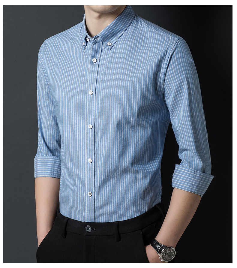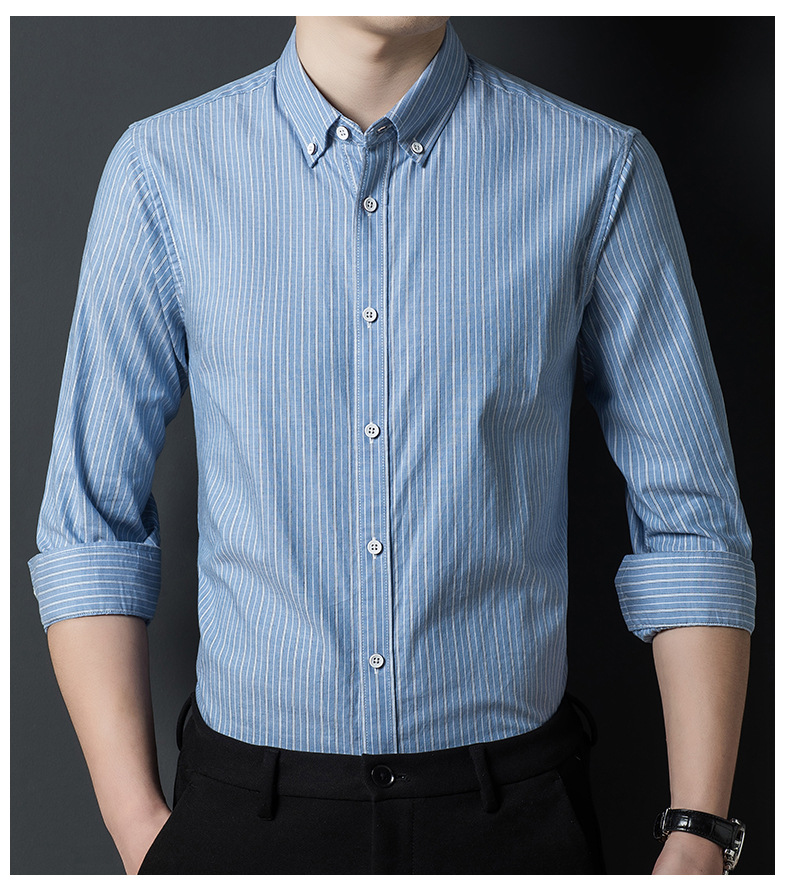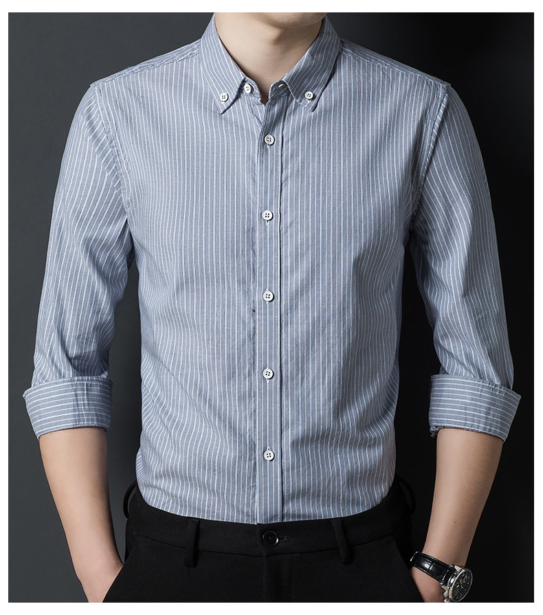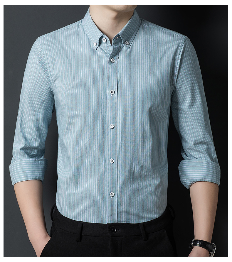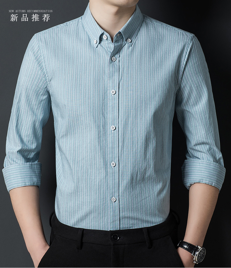 Áo sơ mi nam kẻ sọc dài tay cotton mới xu hướng mùa xuân và mùa thu nam áo sơ mi công sở giản dị bố trang phục