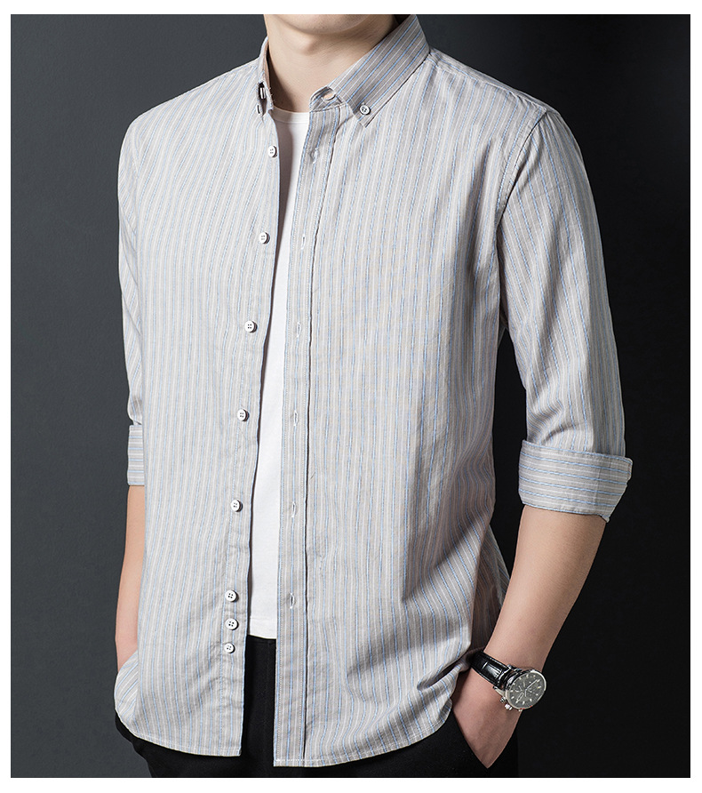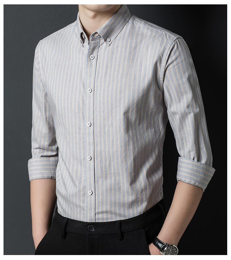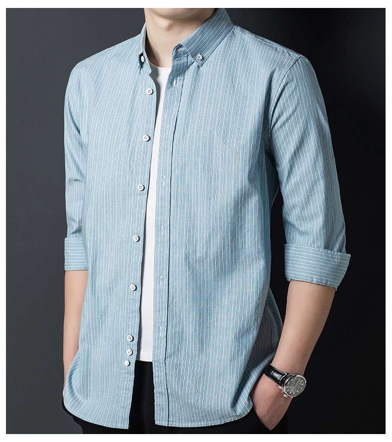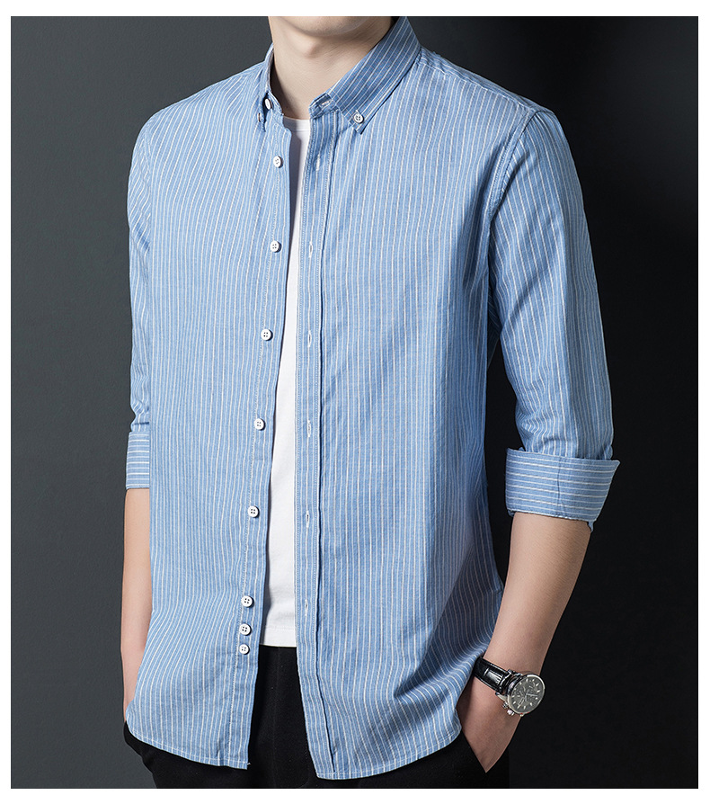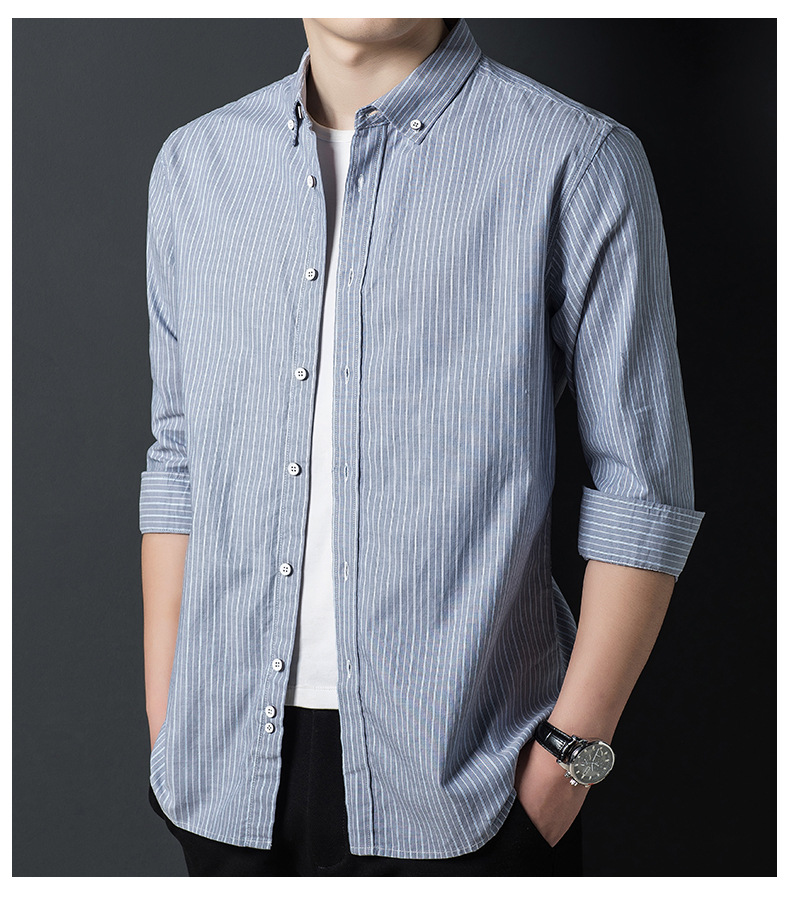 Áo sơ mi nam kẻ sọc dài tay cotton mới xu hướng mùa xuân và mùa thu nam áo sơ mi công sở giản dị bố trang phục