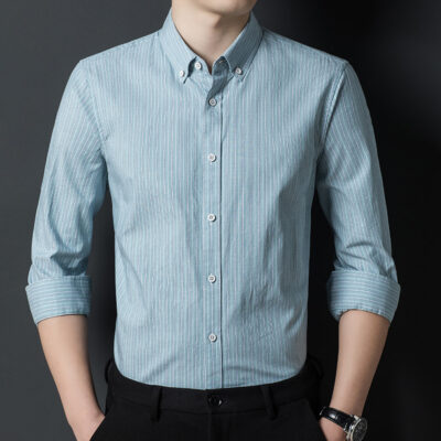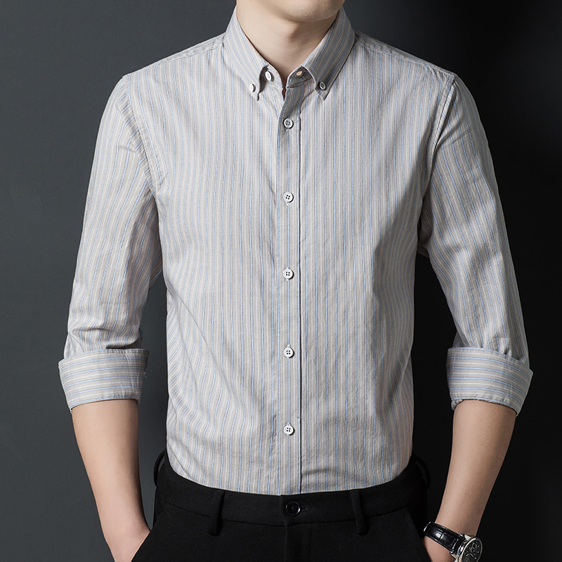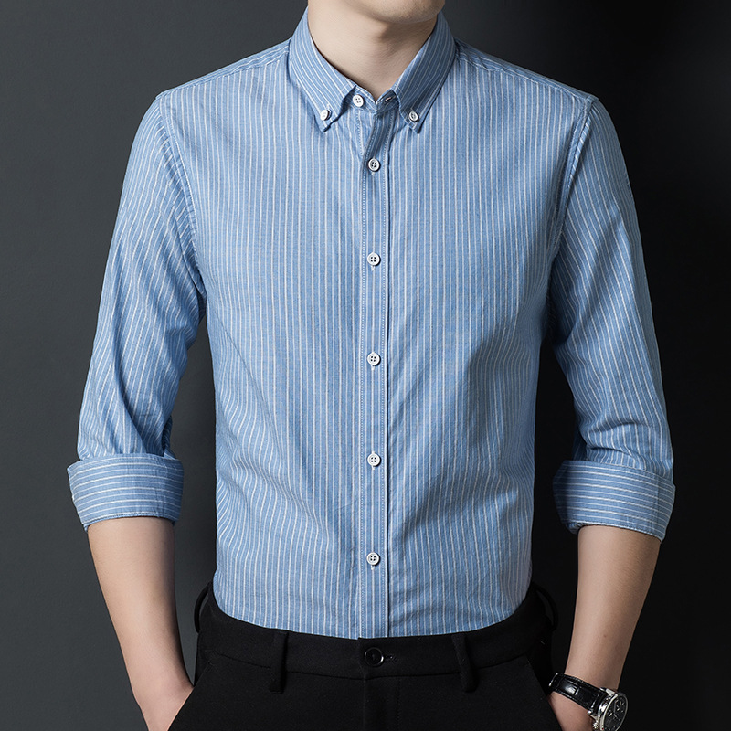 Áo sơ mi nam kẻ sọc dài tay cotton mới xu hướng mùa xuân và mùa thu nam áo sơ mi công sở giản dị bố trang phục