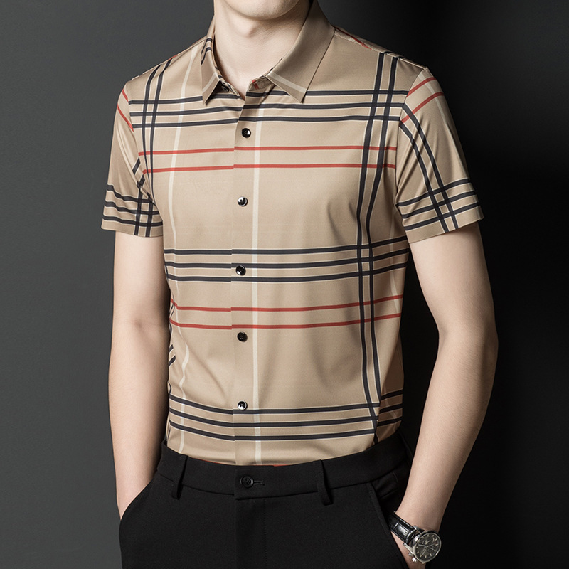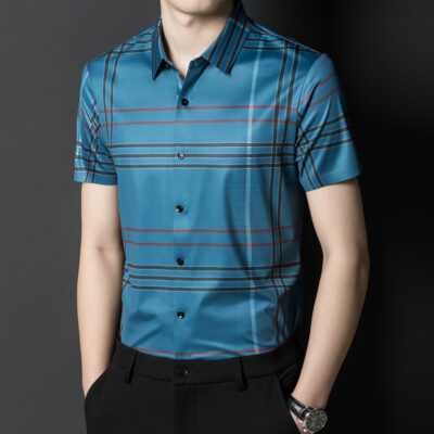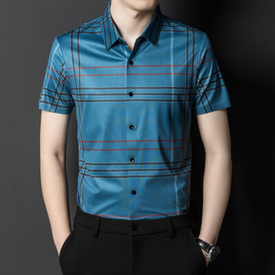 Áo sơ mi nam kẻ sọc ngắn tay mùa hè 2023 thời trang thành thị xu hướng trẻ trung phù hợp với áo sơ mi ngắn tay