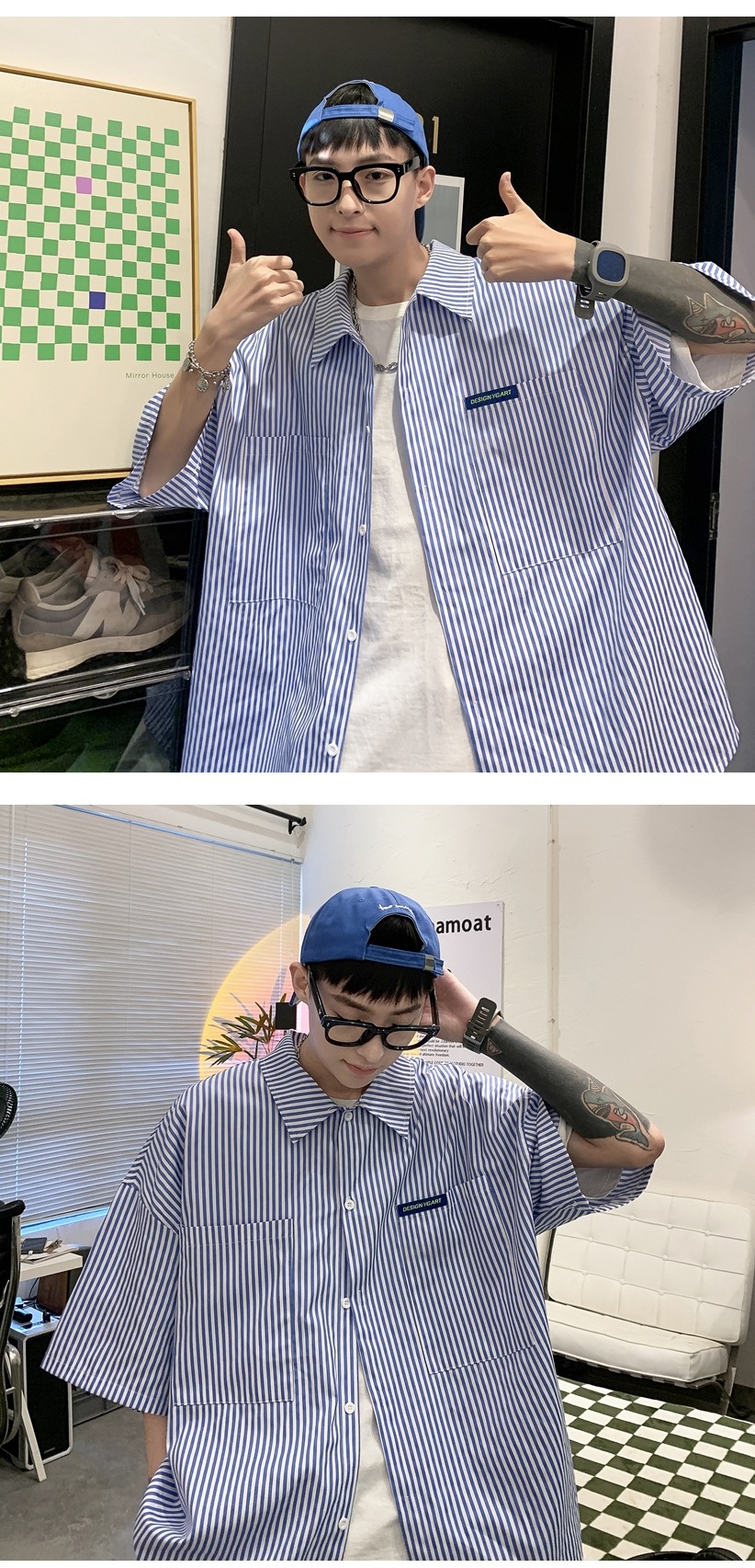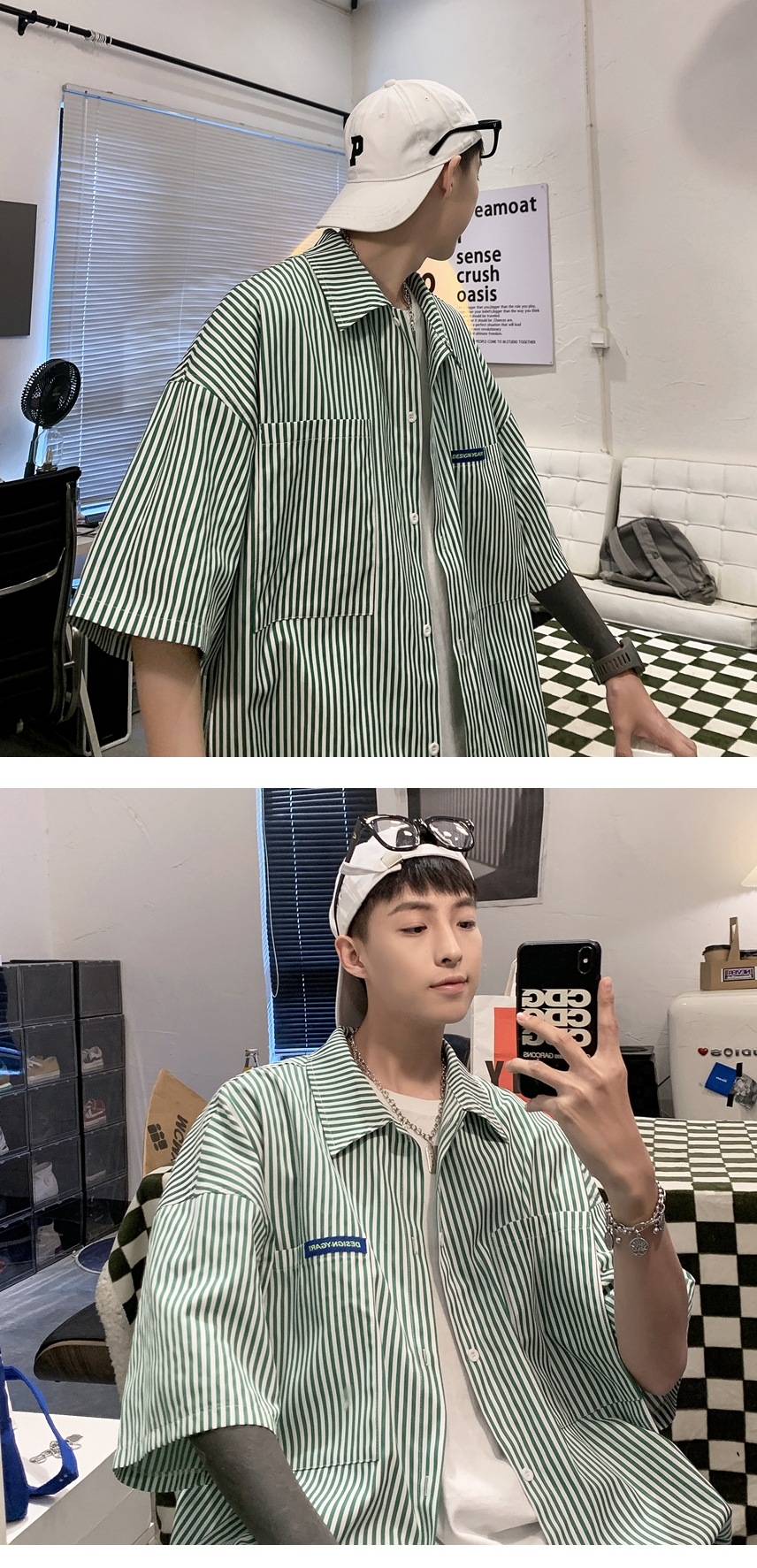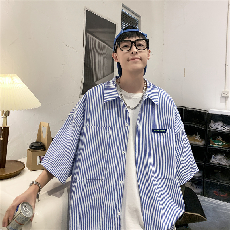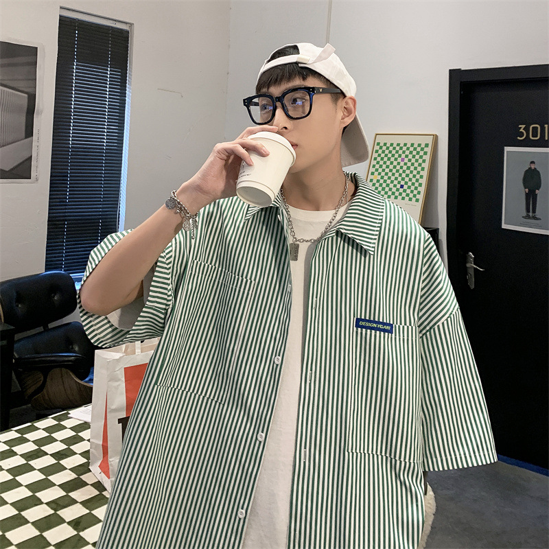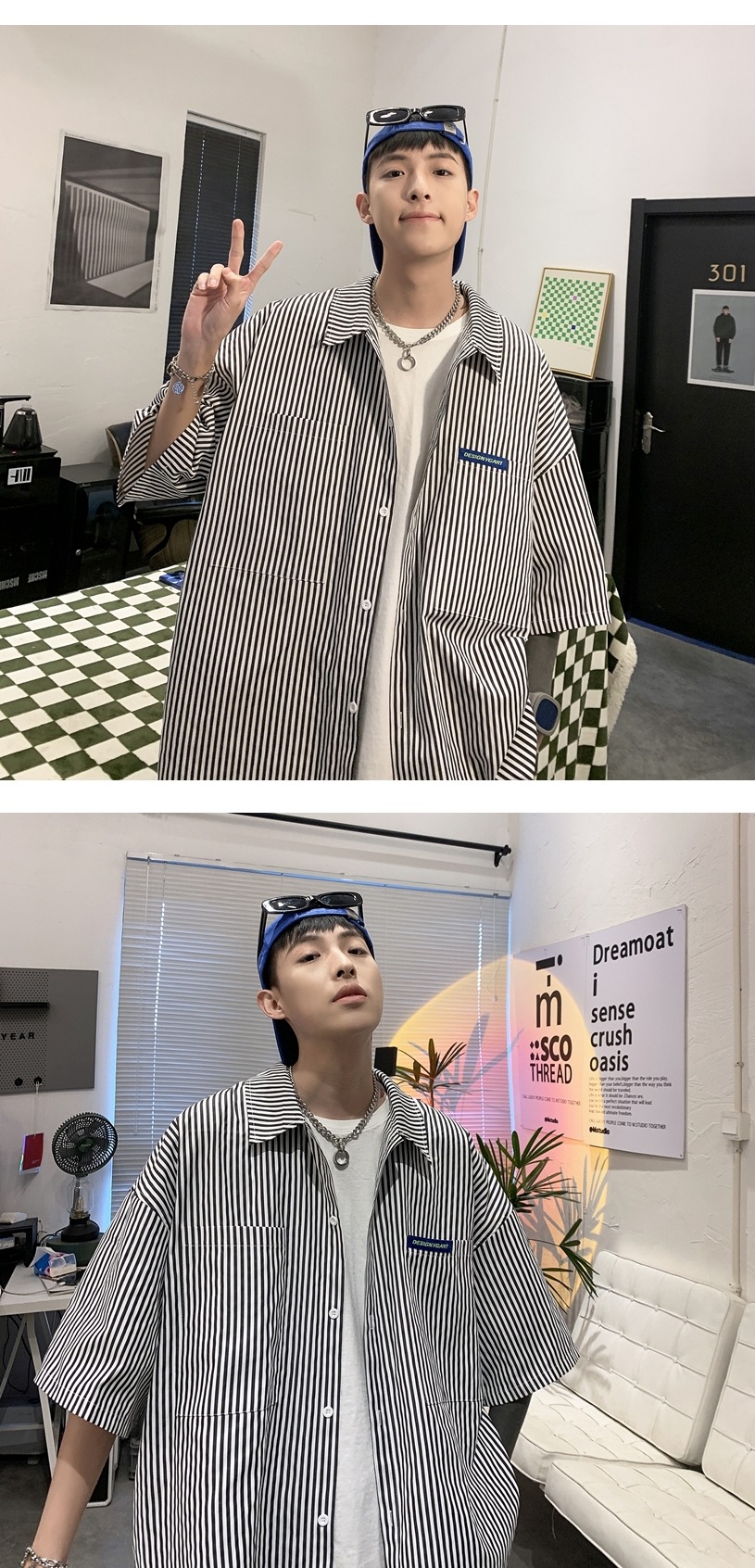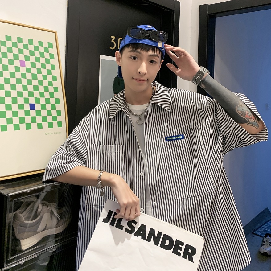 Áo sơ mi nam kẻ sọc rộng mùa hè mới hợp thời trang ngắn tay giản dị cỡ lớn cho nam và nữ áo khoác nam giản dị