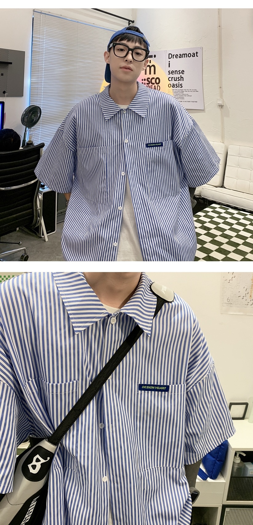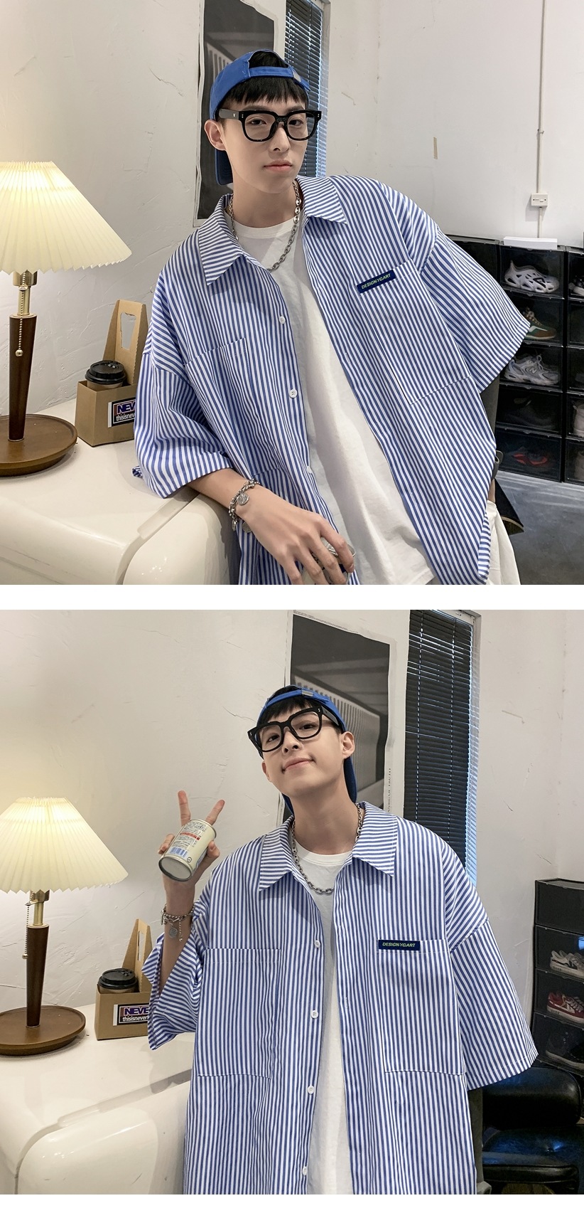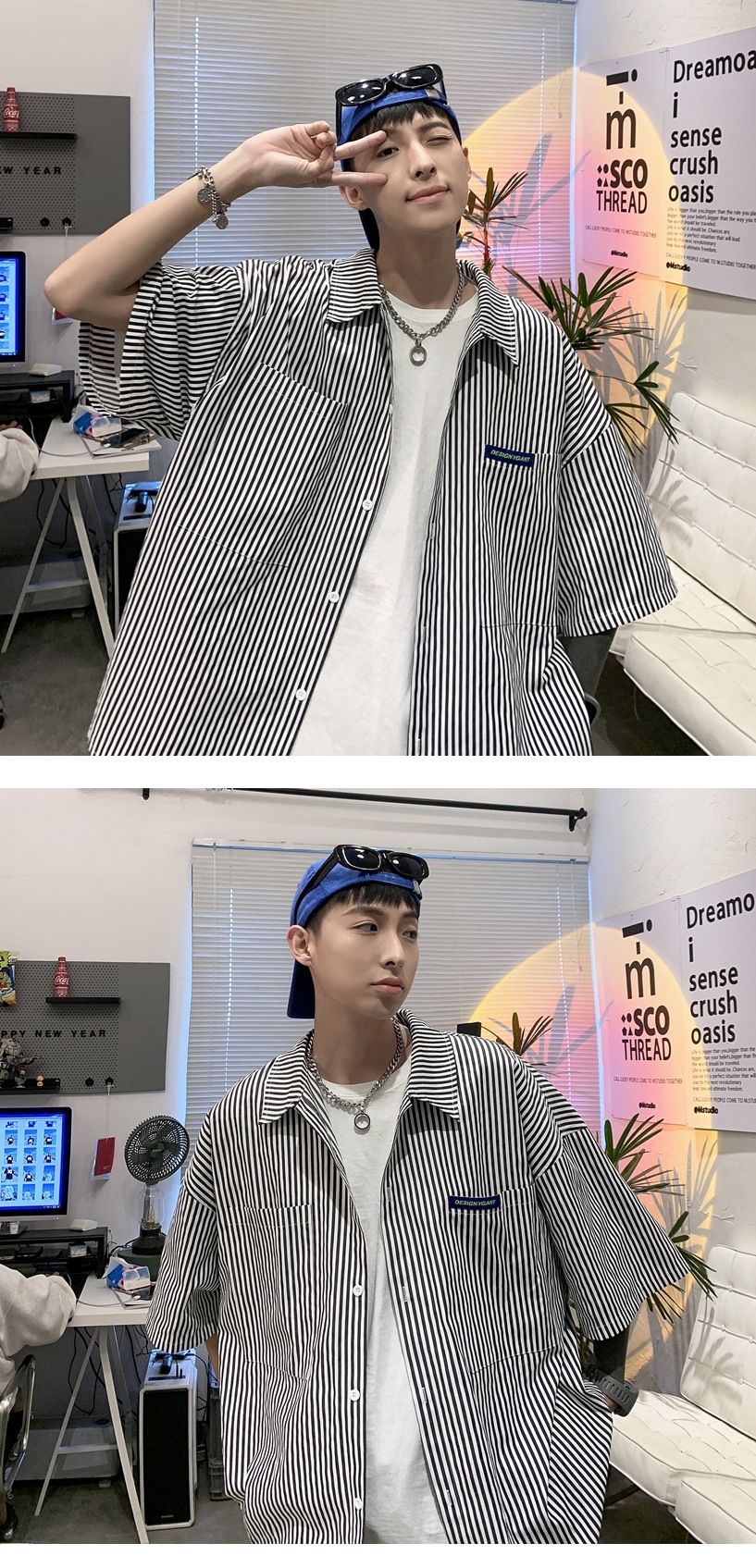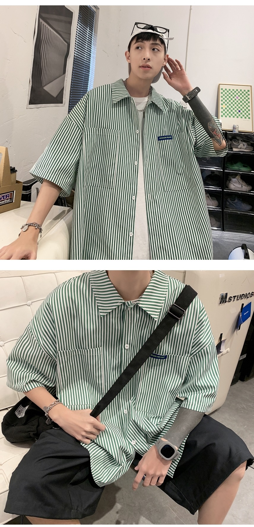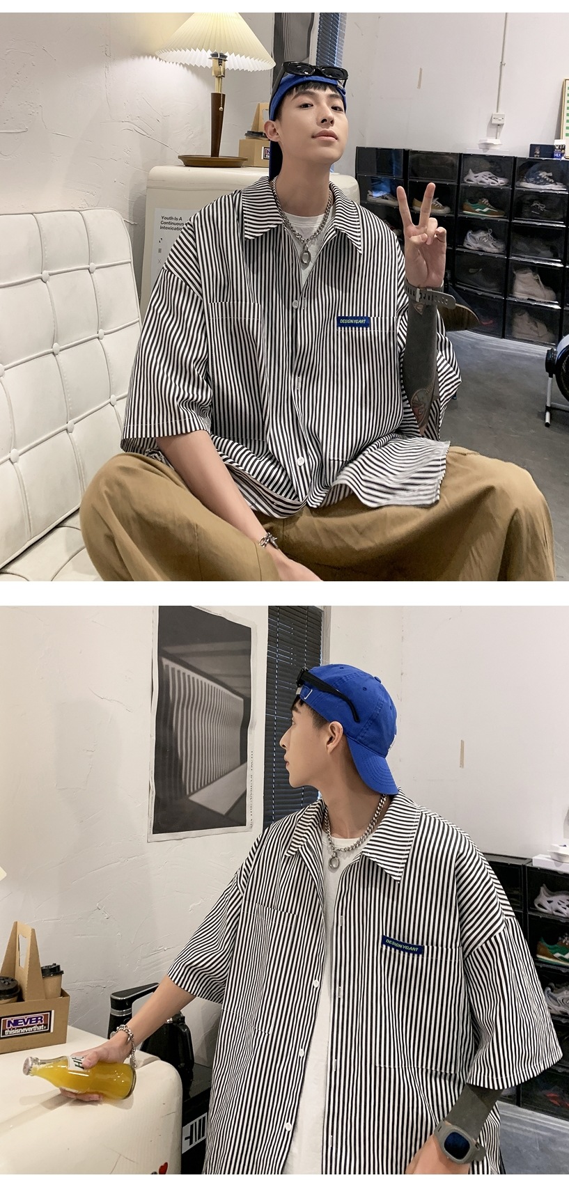 Áo sơ mi nam kẻ sọc rộng mùa hè mới hợp thời trang ngắn tay giản dị cỡ lớn cho nam và nữ áo khoác nam giản dị