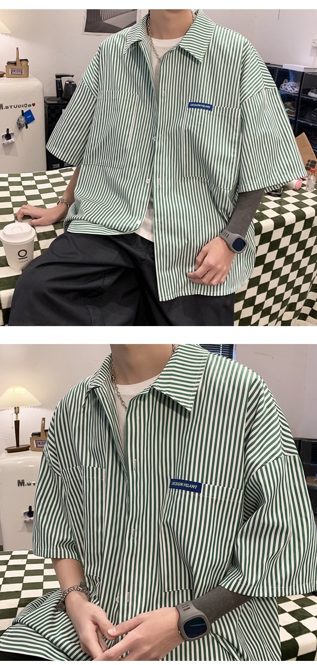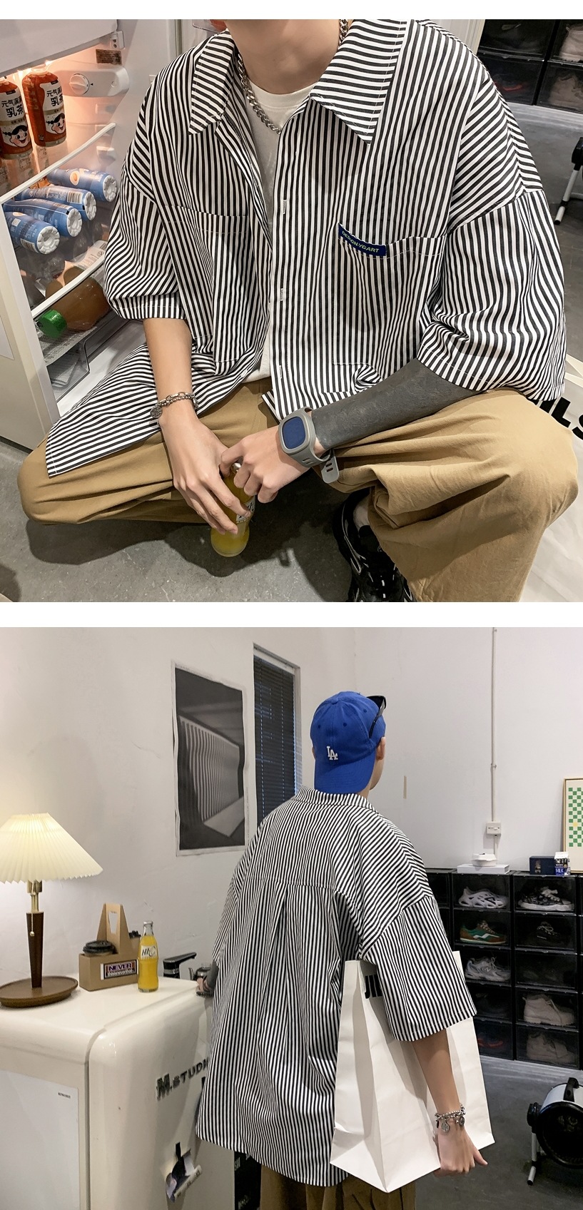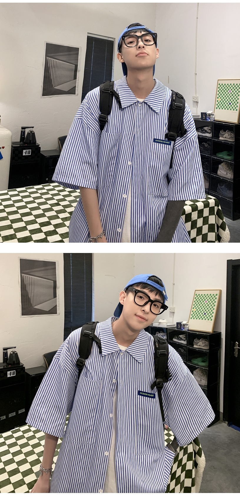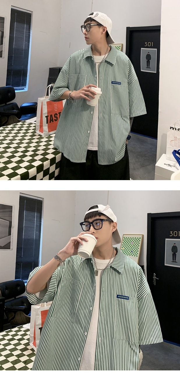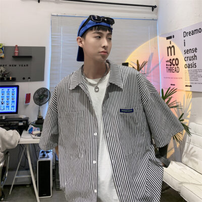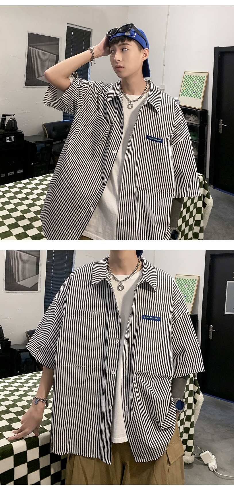 Áo sơ mi nam kẻ sọc rộng mùa hè mới hợp thời trang ngắn tay giản dị cỡ lớn cho nam và nữ áo khoác nam giản dị