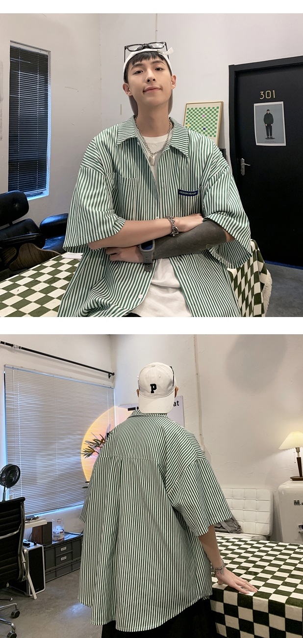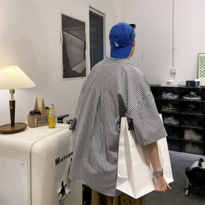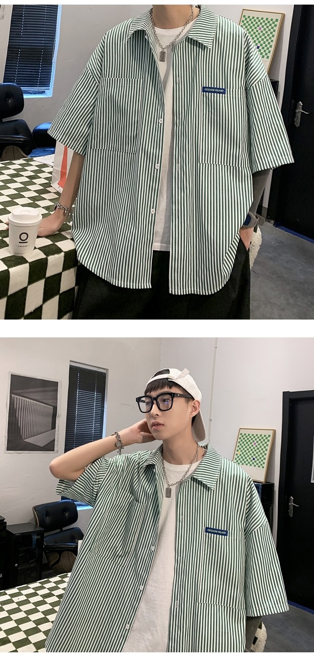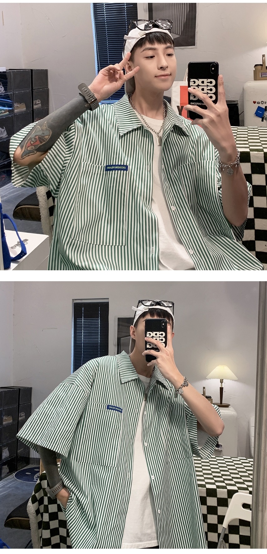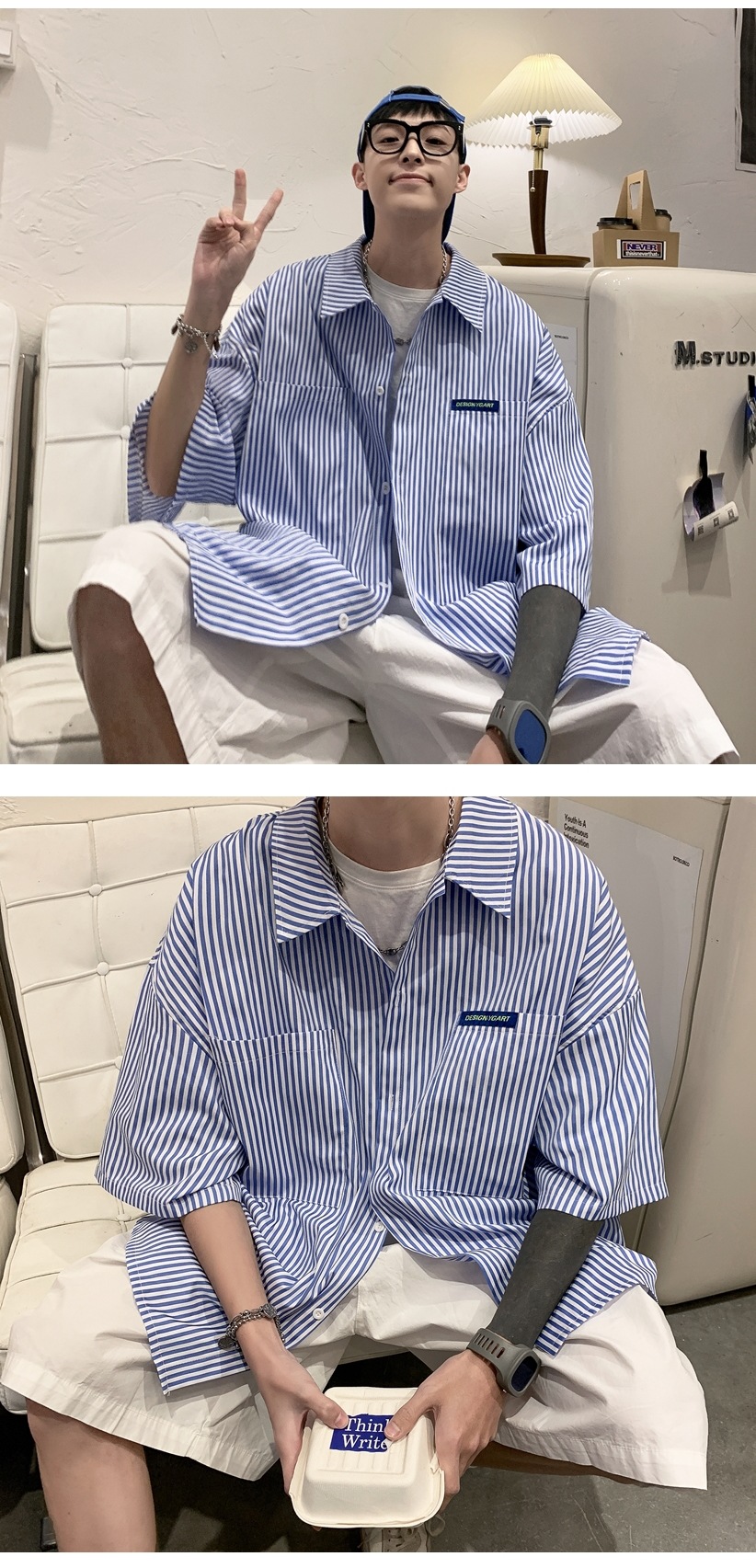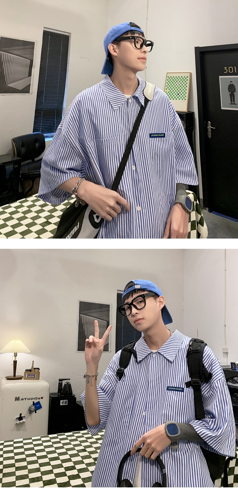 Áo sơ mi nam kẻ sọc rộng mùa hè mới hợp thời trang ngắn tay giản dị cỡ lớn cho nam và nữ áo khoác nam giản dị