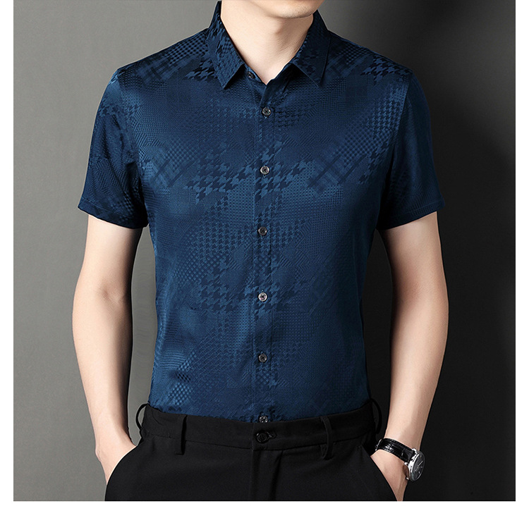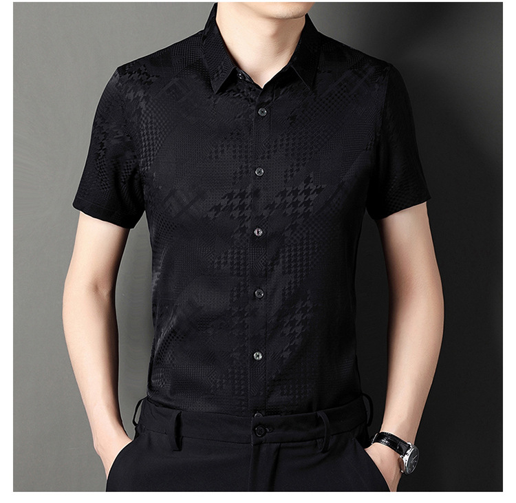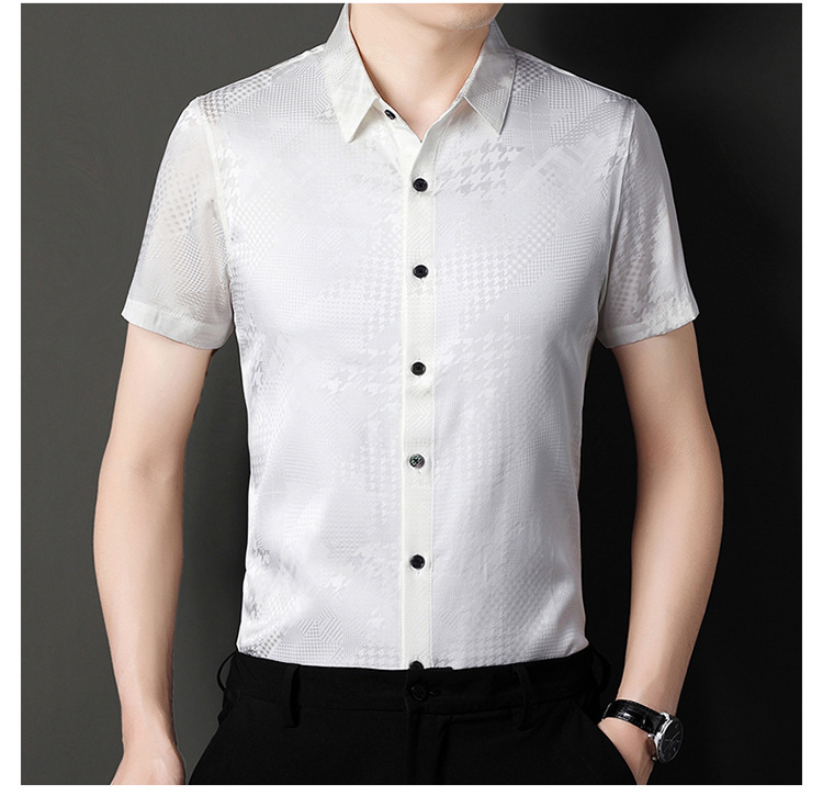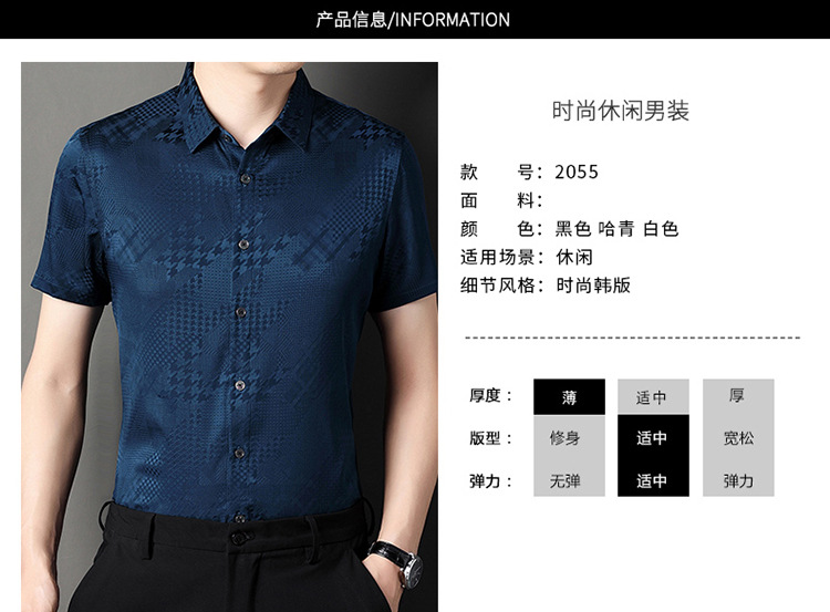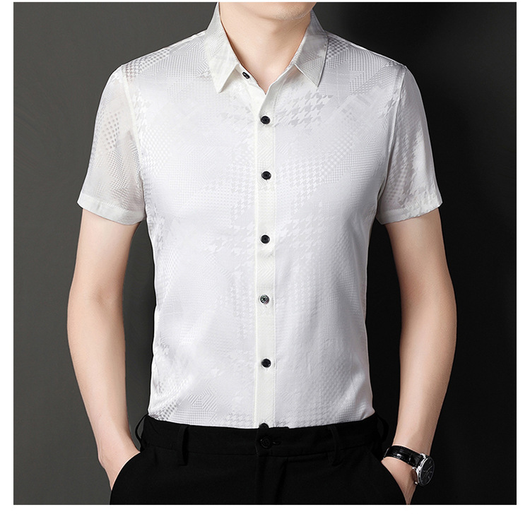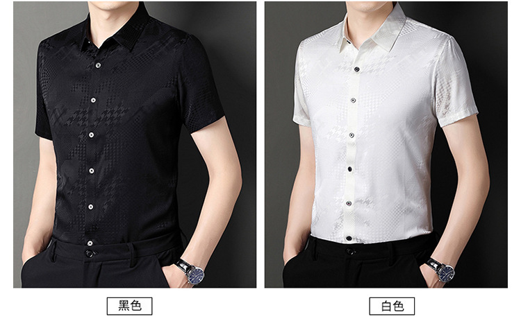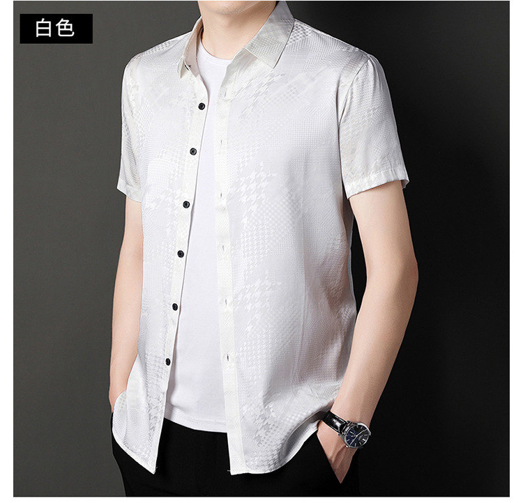 Áo sơ mi nam lụa dâu tằm cao cấp mỏng ngắn tay phong cách Hàn Quốc in hình áo sơ mi nam lụa thời trang quần áo nam hợp thời trang