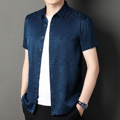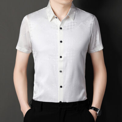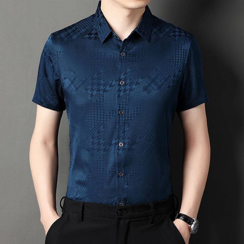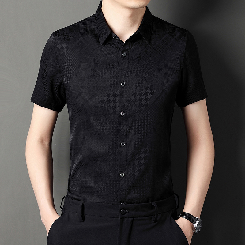 Áo sơ mi nam lụa dâu tằm cao cấp mỏng ngắn tay phong cách Hàn Quốc in hình áo sơ mi nam lụa thời trang quần áo nam hợp thời trang