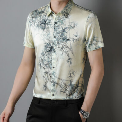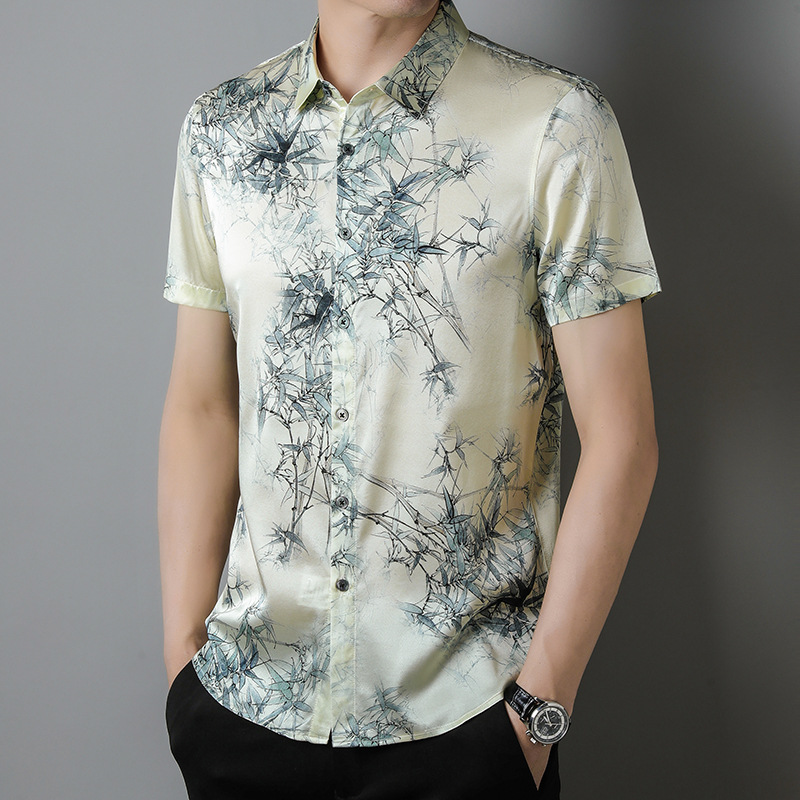Áo sơ mi nam lụa dâu tằm ngắn tay mùa hè mới công sở sơ mi lụa dày cao cấp sơ mi nam cộc tay