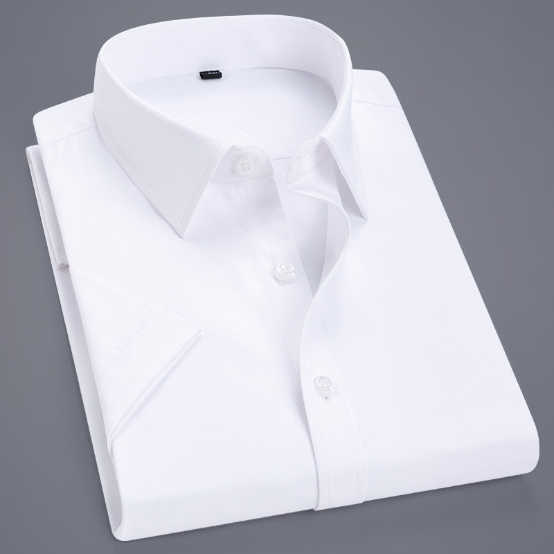Áo sơ mi nam mặc công sở mùa xuân 2022 áo sơ mi nam công sở thêu logo đồng màu áo sơ mi trắng dụng cụ ngắn tay