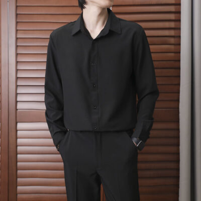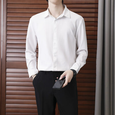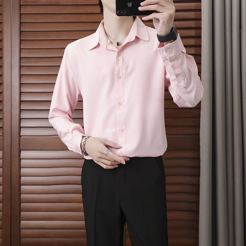 Áo sơ mi nam màu đỏ rượu vang áo sơ mi nam công sở trang phục công sở phiên bản Hàn Quốc chú rể dài tay mỏng phù rể đẹp trai cảm giác hôn nhân