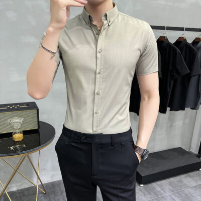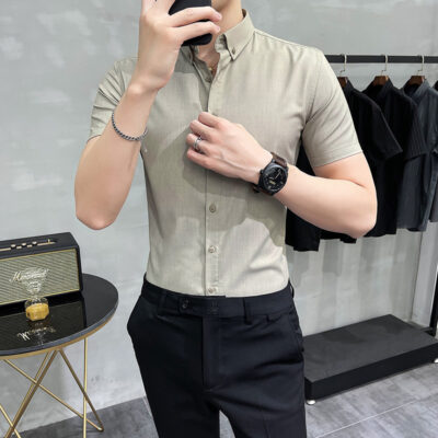 Áo sơ mi nam mỏng mùa hè mặc công sở phong cách Hàn Quốc hợp thời trang áo sơ mi nam ngắn tay màu trơn cao cấp