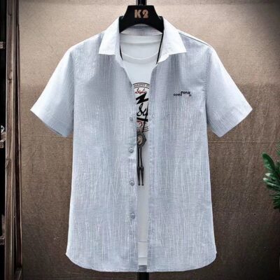Áo sơ mi nam mùa hè băng lụa mỏng quần áo hàng đầu nam 2023 thương hiệu mới hợp thời trang áo sơ mi nam giản dị nam