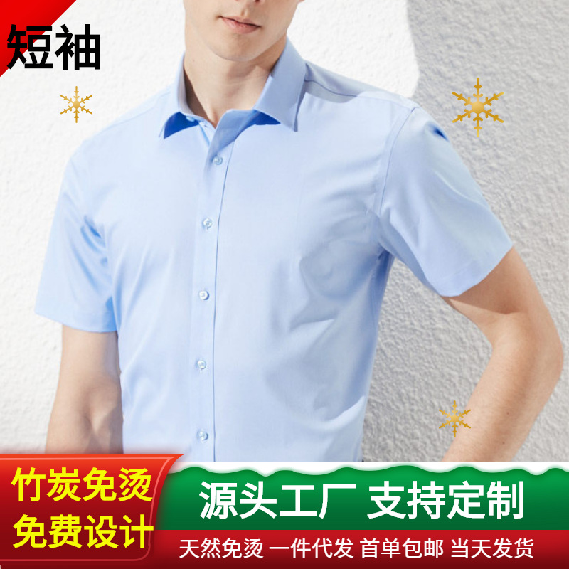Áo sơ mi nam mùa hè co giãn không cần ủi áo sơ mi nam áo sơ mi nam logo tùy chỉnh sợi tre quần áo nam