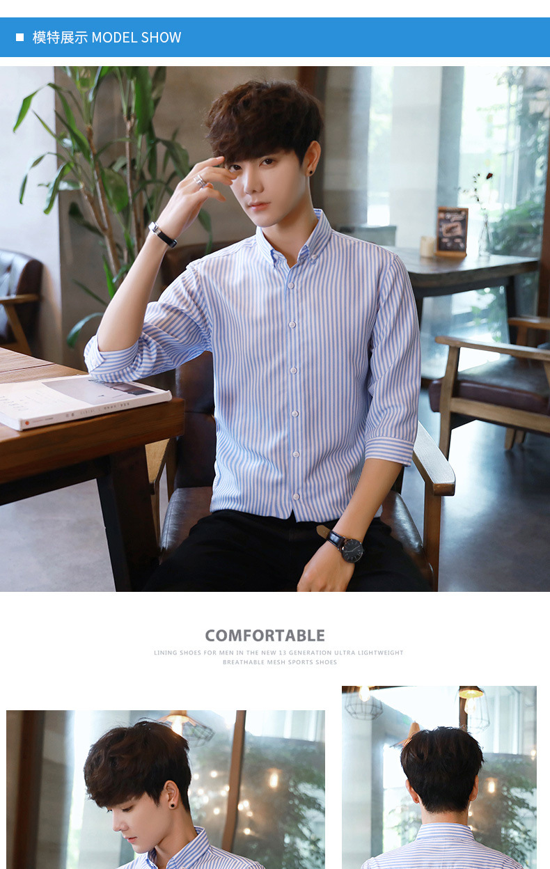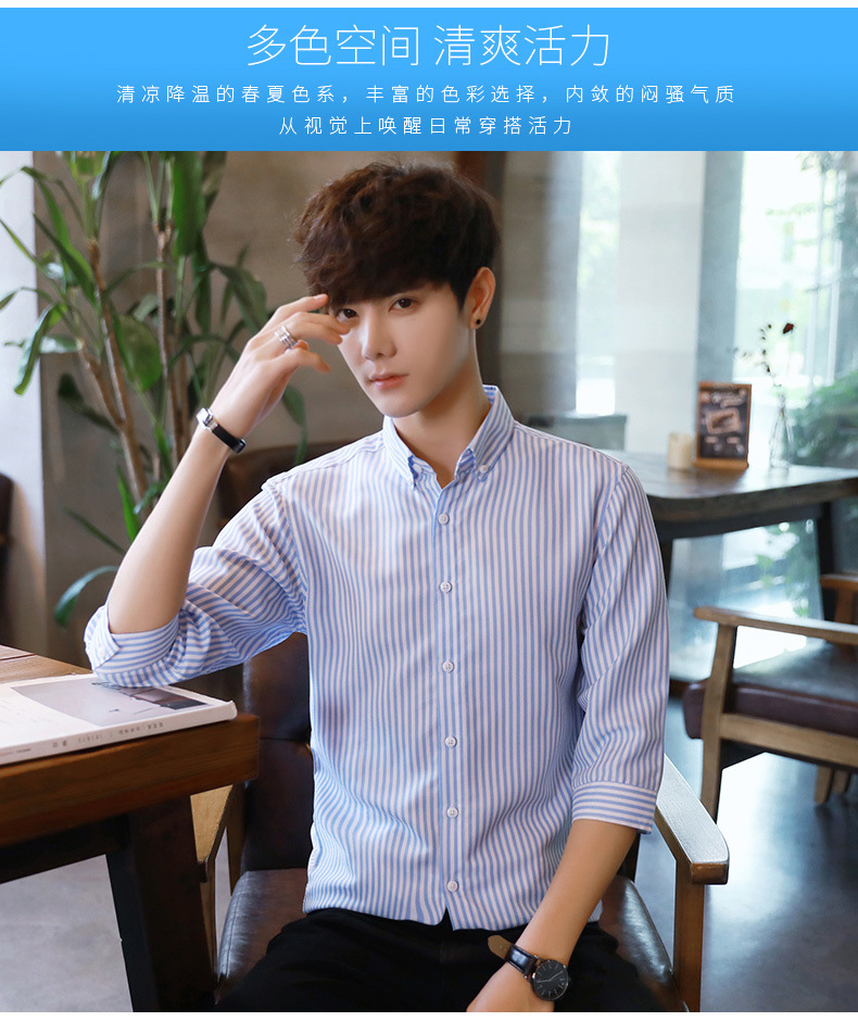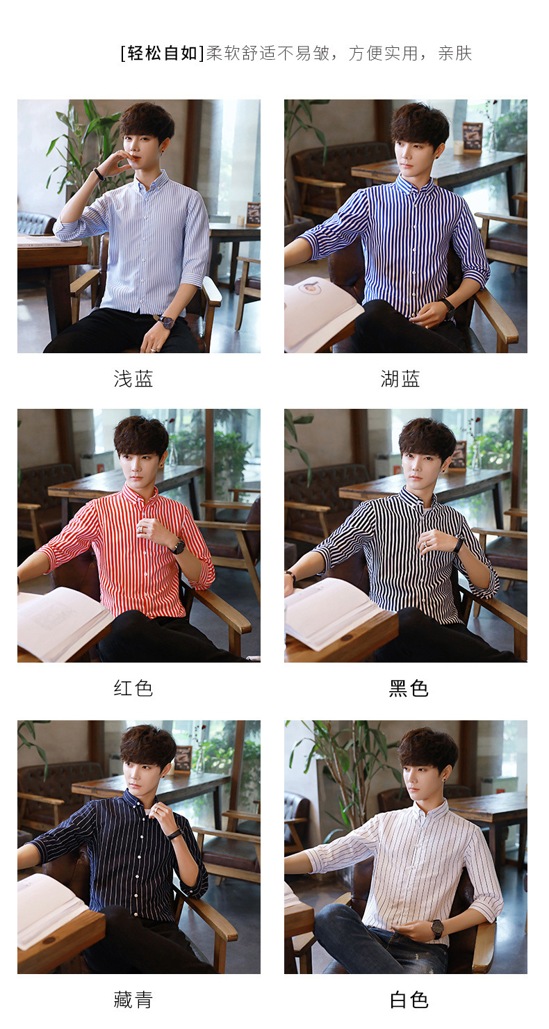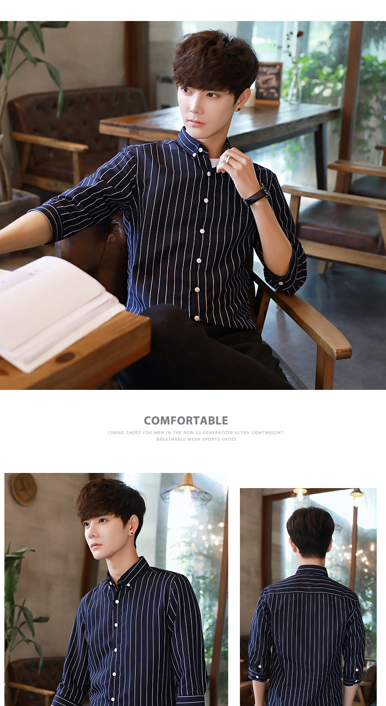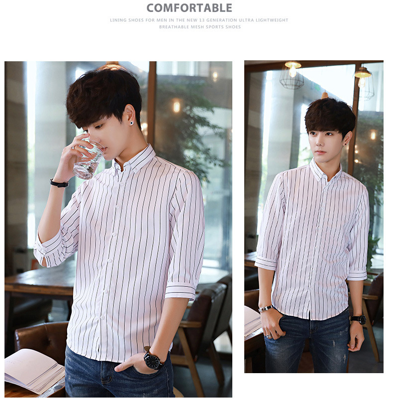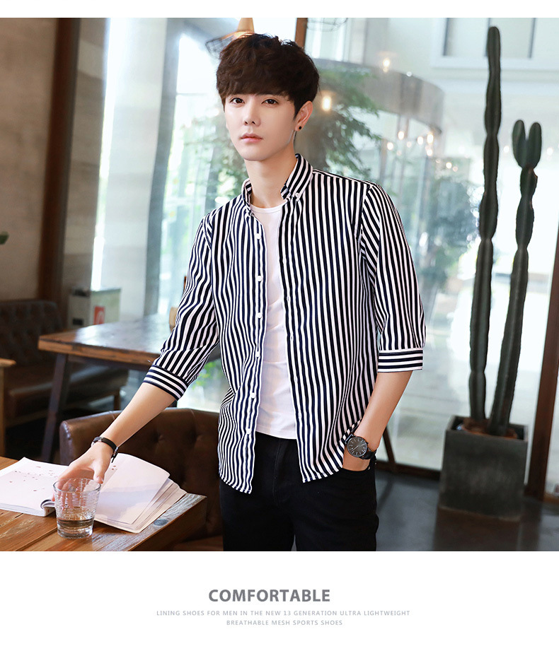 Áo sơ mi nam mùa hè mới Sọc dọc nam mỏng tay ba phần tư Học sinh hợp thời trang Áo sơ mi nam ngắn tay đẹp trai Hàn Quốc