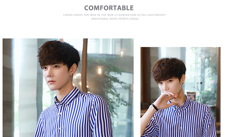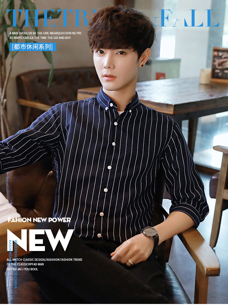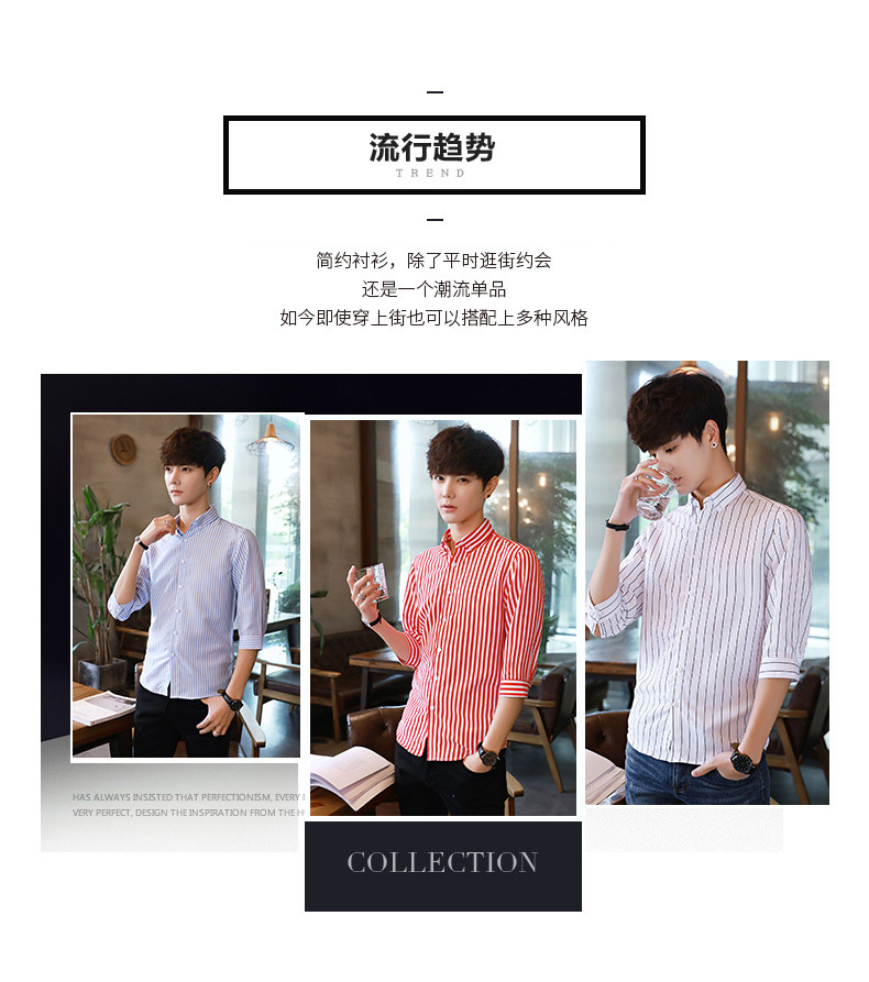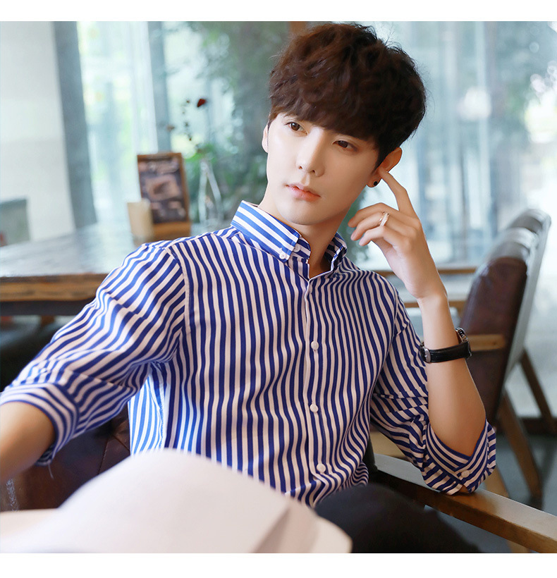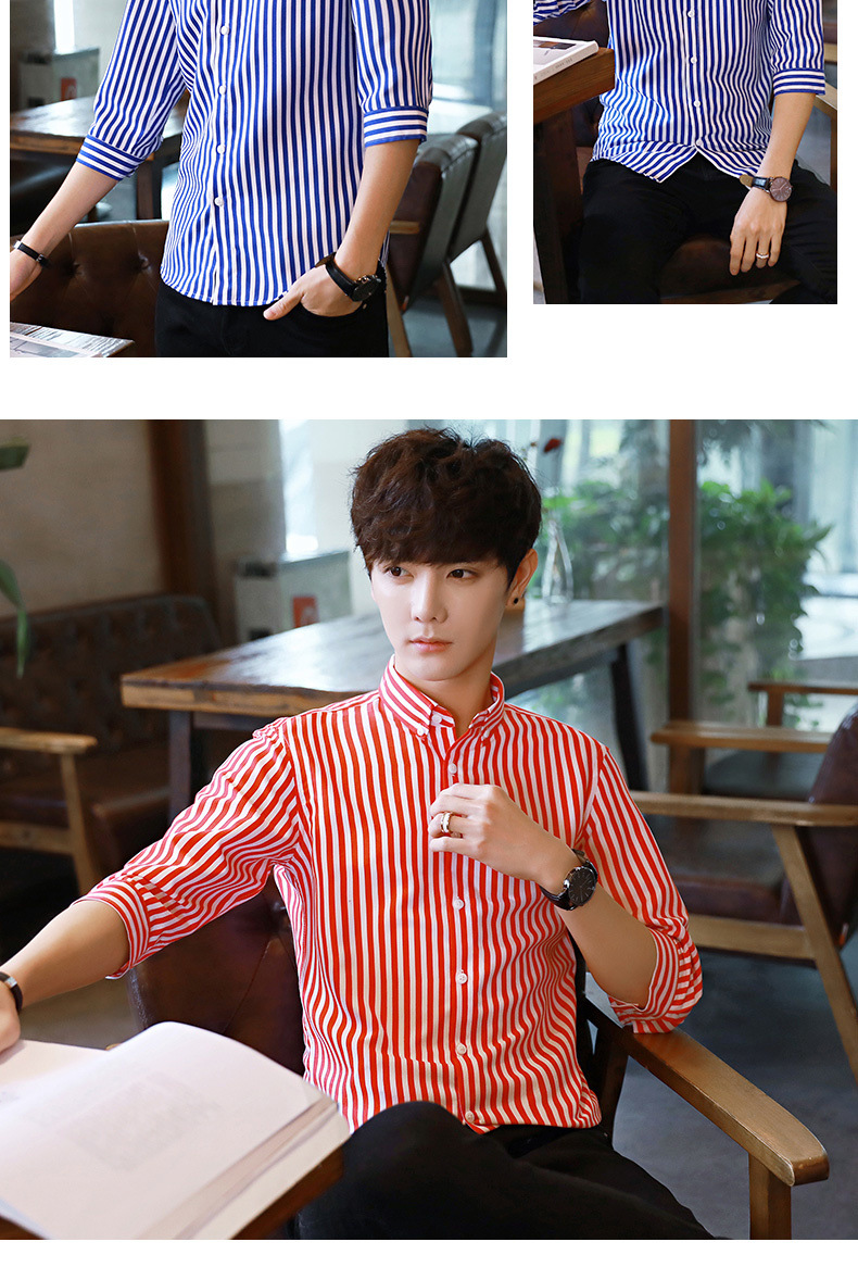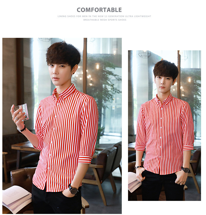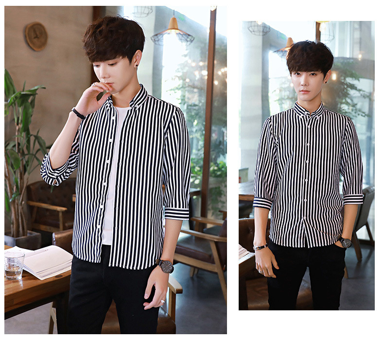 Áo sơ mi nam mùa hè mới Sọc dọc nam mỏng tay ba phần tư Học sinh hợp thời trang Áo sơ mi nam ngắn tay đẹp trai Hàn Quốc