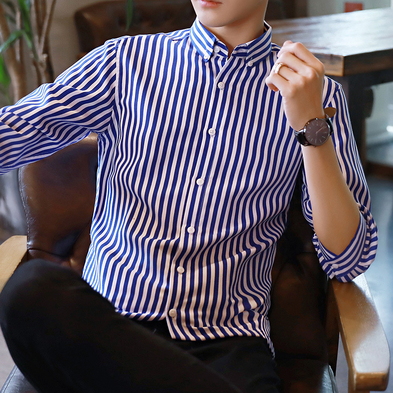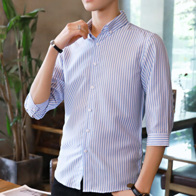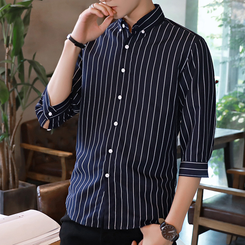 Áo sơ mi nam mùa hè mới Sọc dọc nam mỏng tay ba phần tư Học sinh hợp thời trang Áo sơ mi nam ngắn tay đẹp trai Hàn Quốc