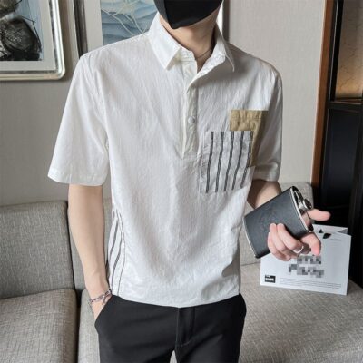 Áo sơ mi nam mùa hè ngắn tay thương hiệu hợp thời trang hợp thời trang cao cấp cảm giác đẹp trai đơn giản phù hợp với tất cả áo sơ mi sọc Nhật Bản để mặc