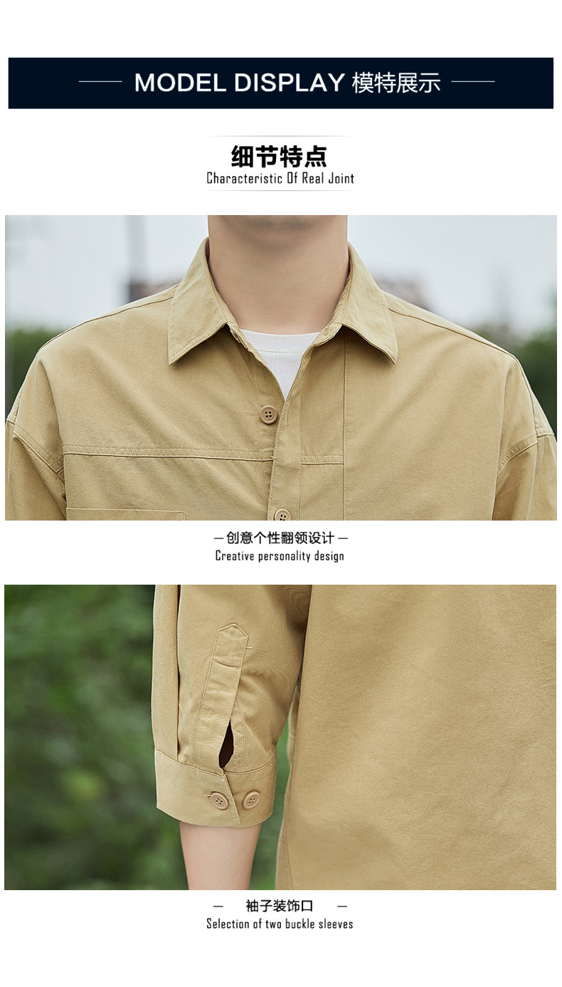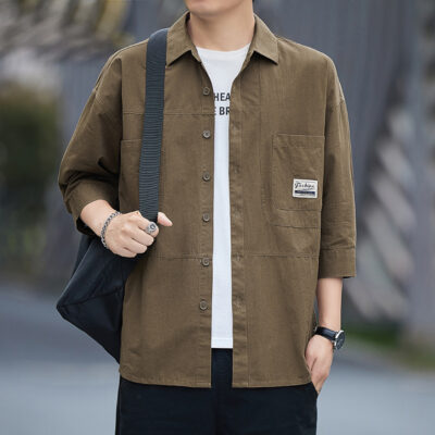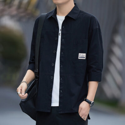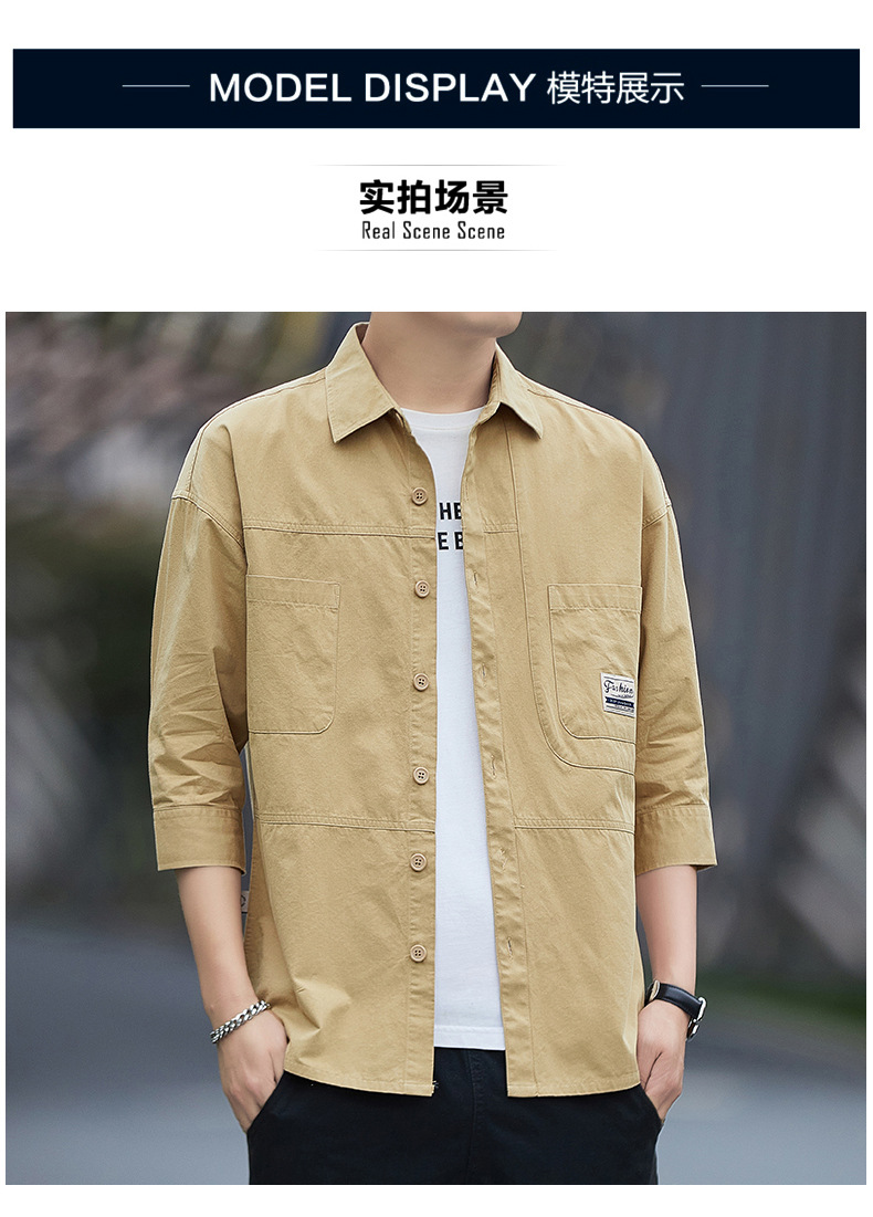 Áo sơ mi nam mùa hè tay ba phần tư cotton đa năng đẹp trai sơ mi giản dị bảo hộ lao động rời tay hợp thời trang