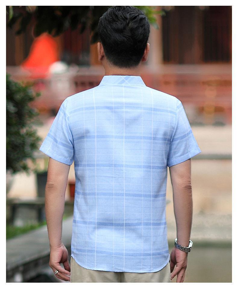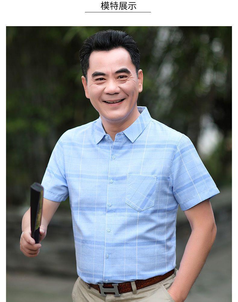 Áo sơ mi nam mùa hè trung niên của cha áo sơ mi kẻ sọc lụa băng ngắn tay của ông nội áo sơ mi nam trung niên và cao tuổi mùa hè