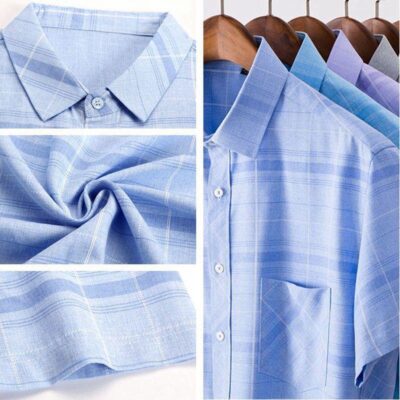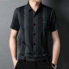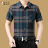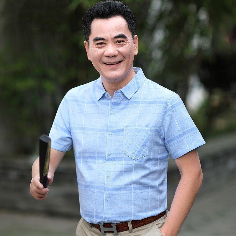 Áo sơ mi nam mùa hè trung niên của cha áo sơ mi kẻ sọc lụa băng ngắn tay của ông nội áo sơ mi nam trung niên và cao tuổi mùa hè
