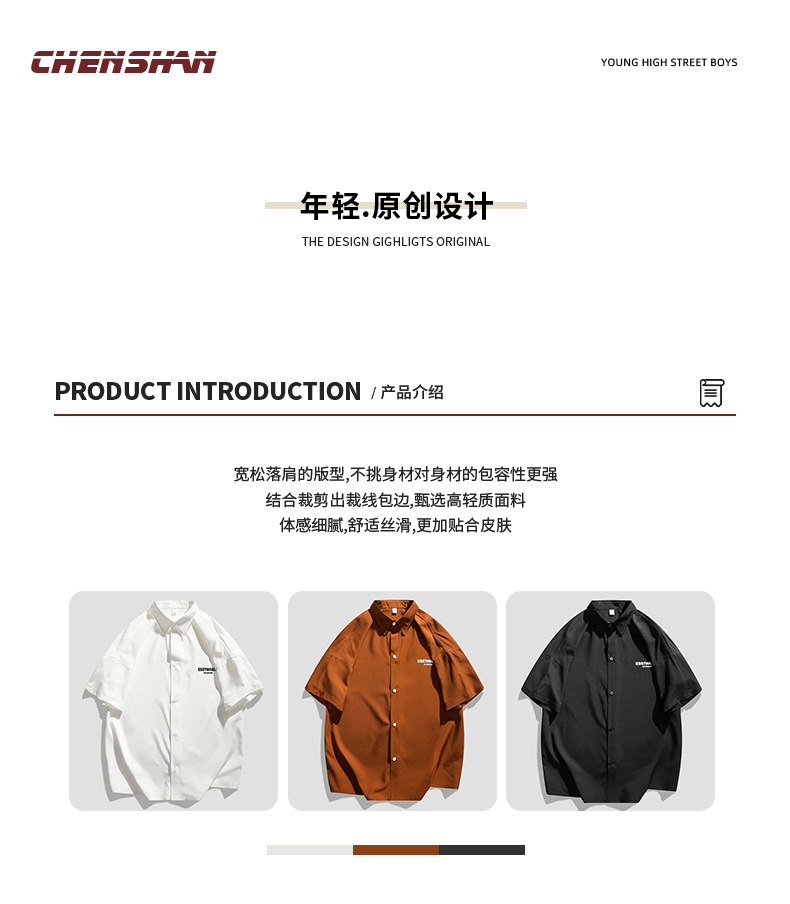 Áo sơ mi nam ngắn tay bằng lụa băng mùa hè 2023 mới năm phần tư áo sơ mi bé trai thương hiệu hợp thời trang áo khoác giản dị quần áo hàng đầu