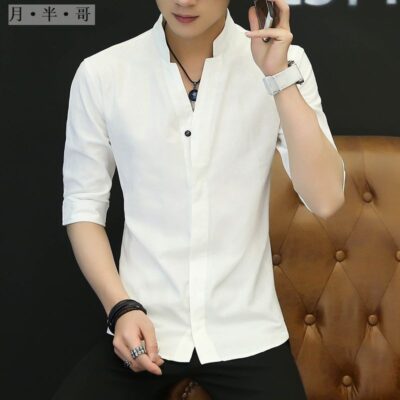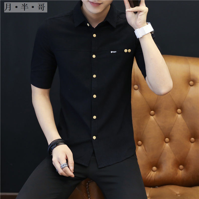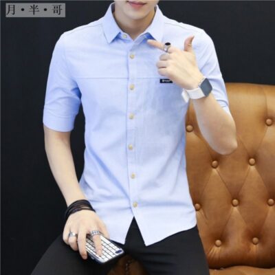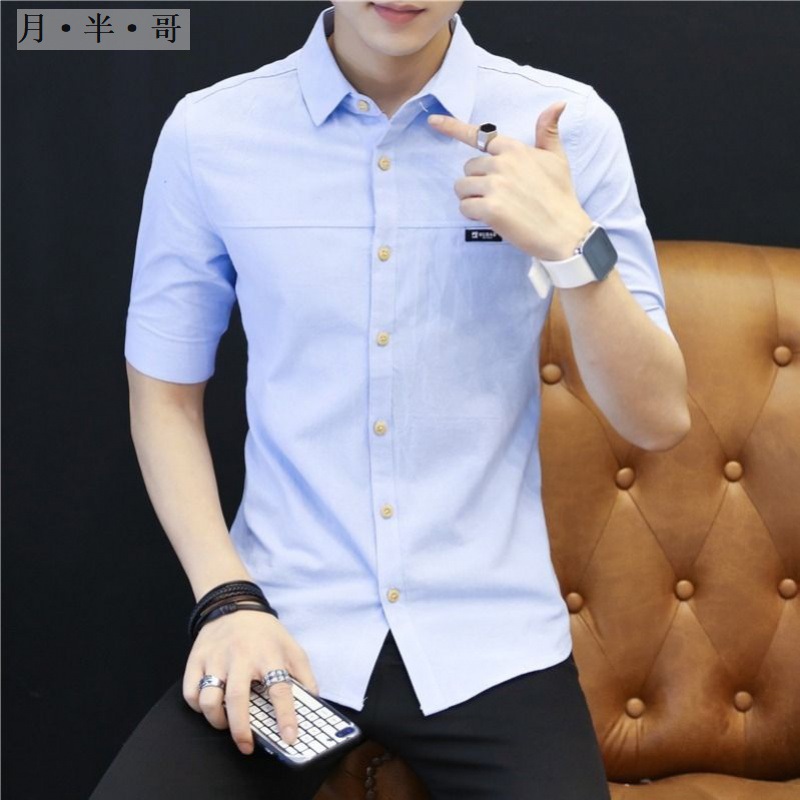 Áo Sơ Mi Nam Ngắn Tay Cotton Nguyên Chất Mùa Hè Hàn Quốc Sơ Mi Nam Trẻ Trung Tay Lửng Sinh Viên Mỏng Tất Cả Phù Hợp Hợp Thời Trang