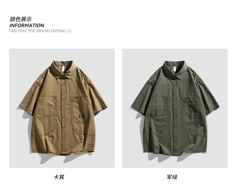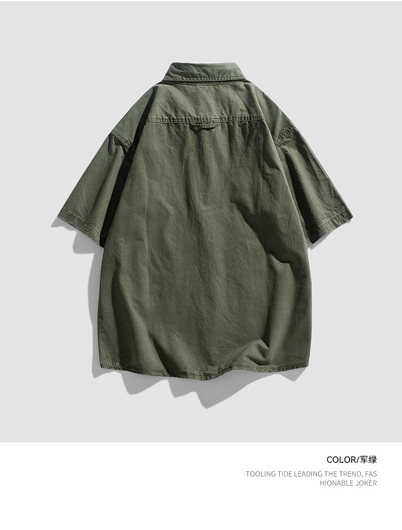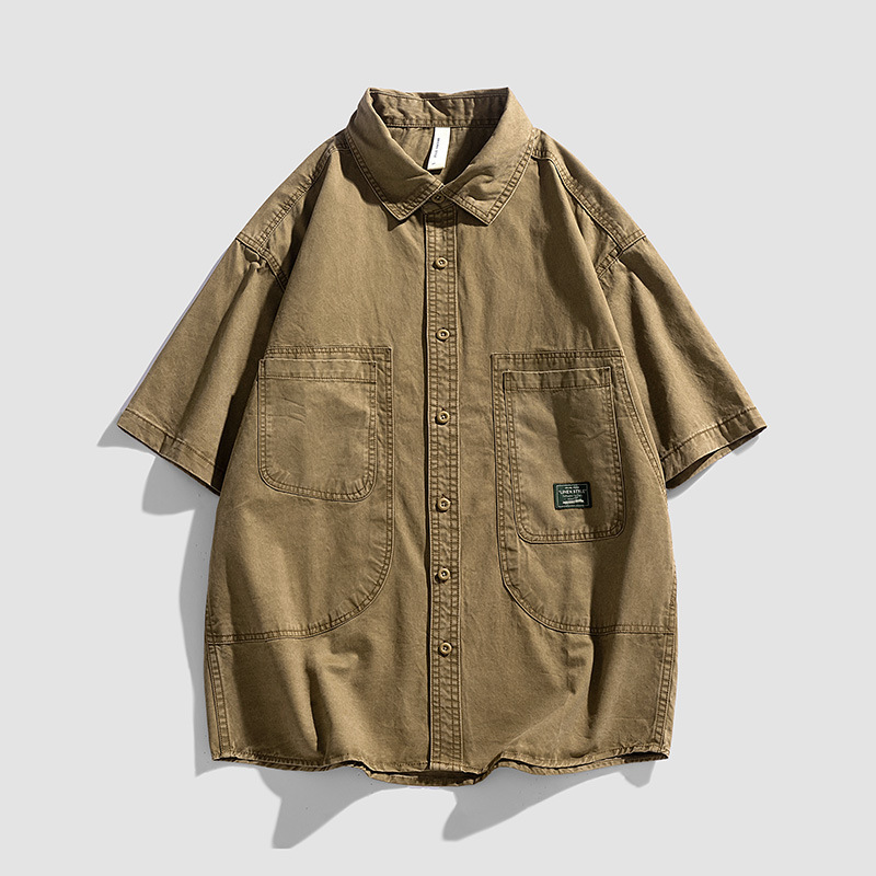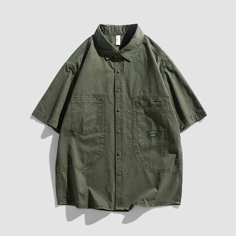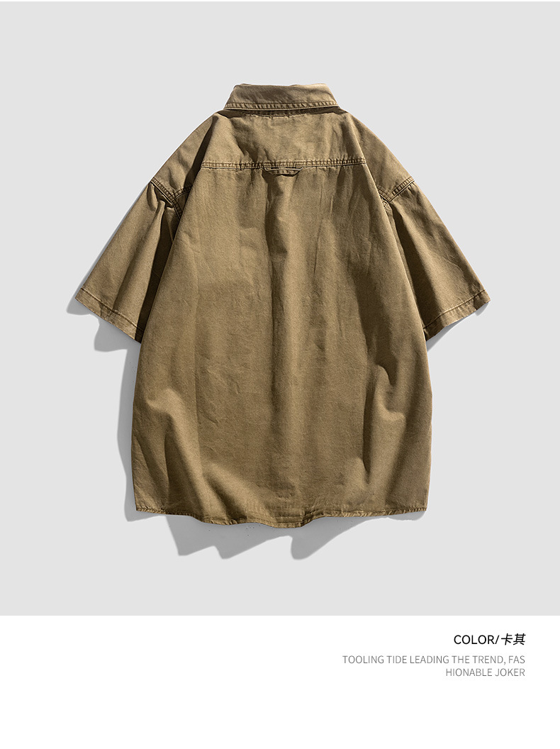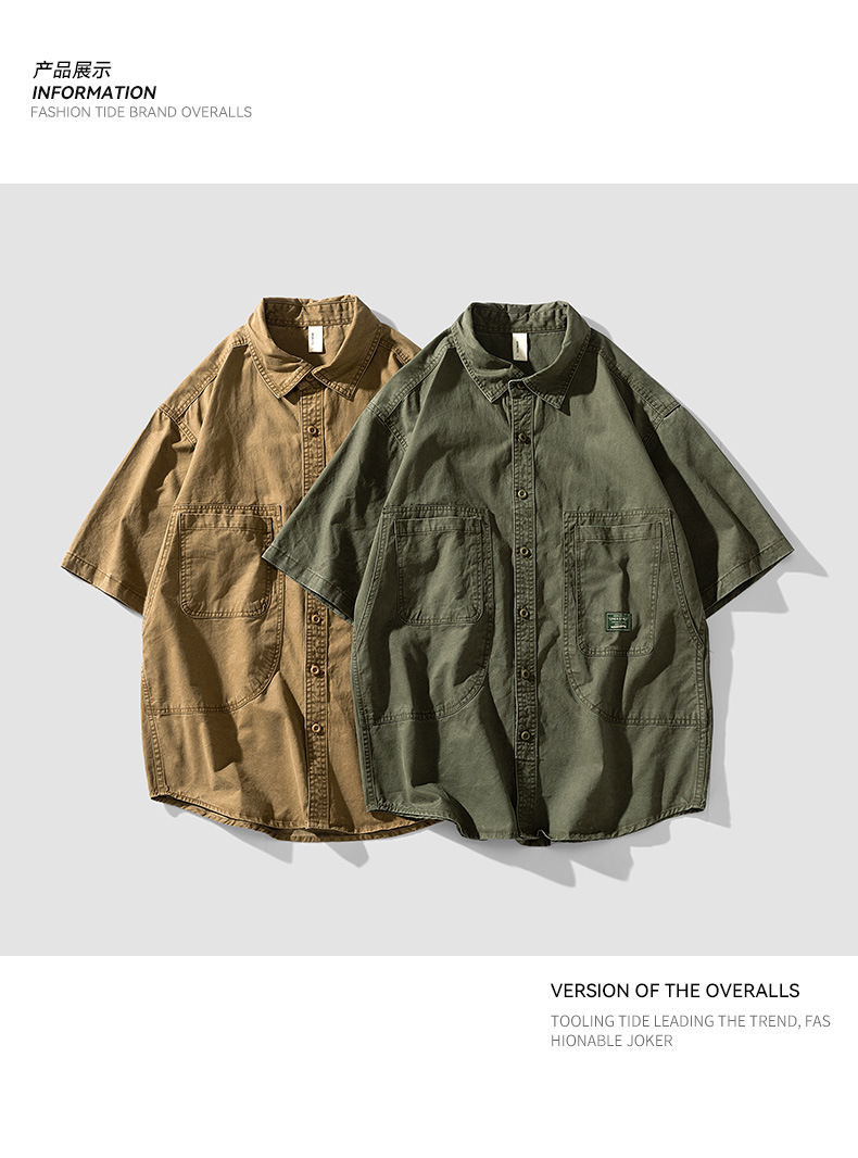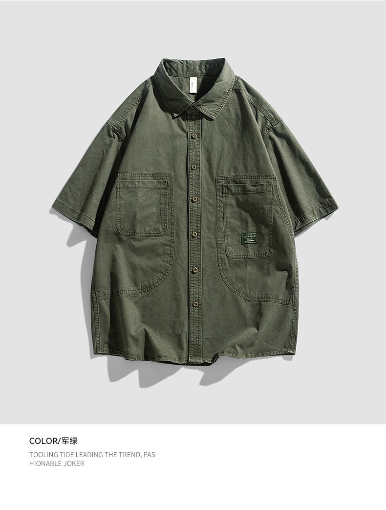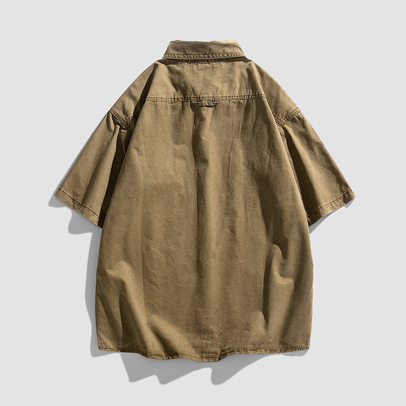 Áo sơ mi nam ngắn tay kiểu Mỹ dáng rộng denim cotton ống tay áo năm phần tư mùa hè hợp thời trang thương hiệu ruffian đẹp trai dụng cụ áo sơ mi nam