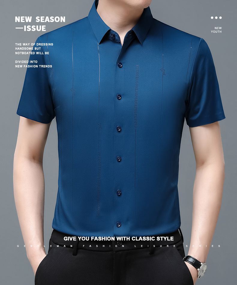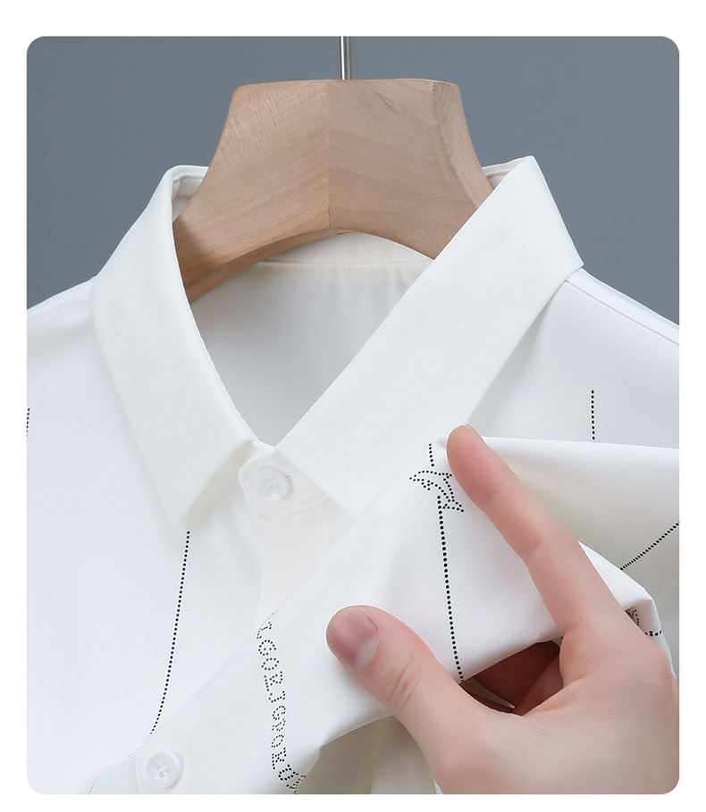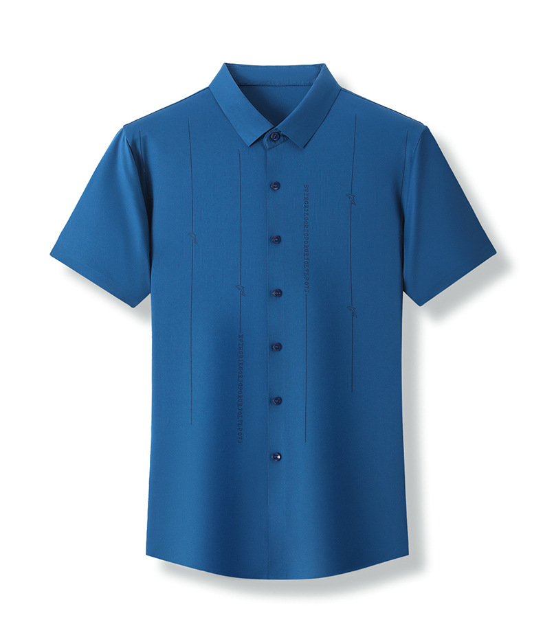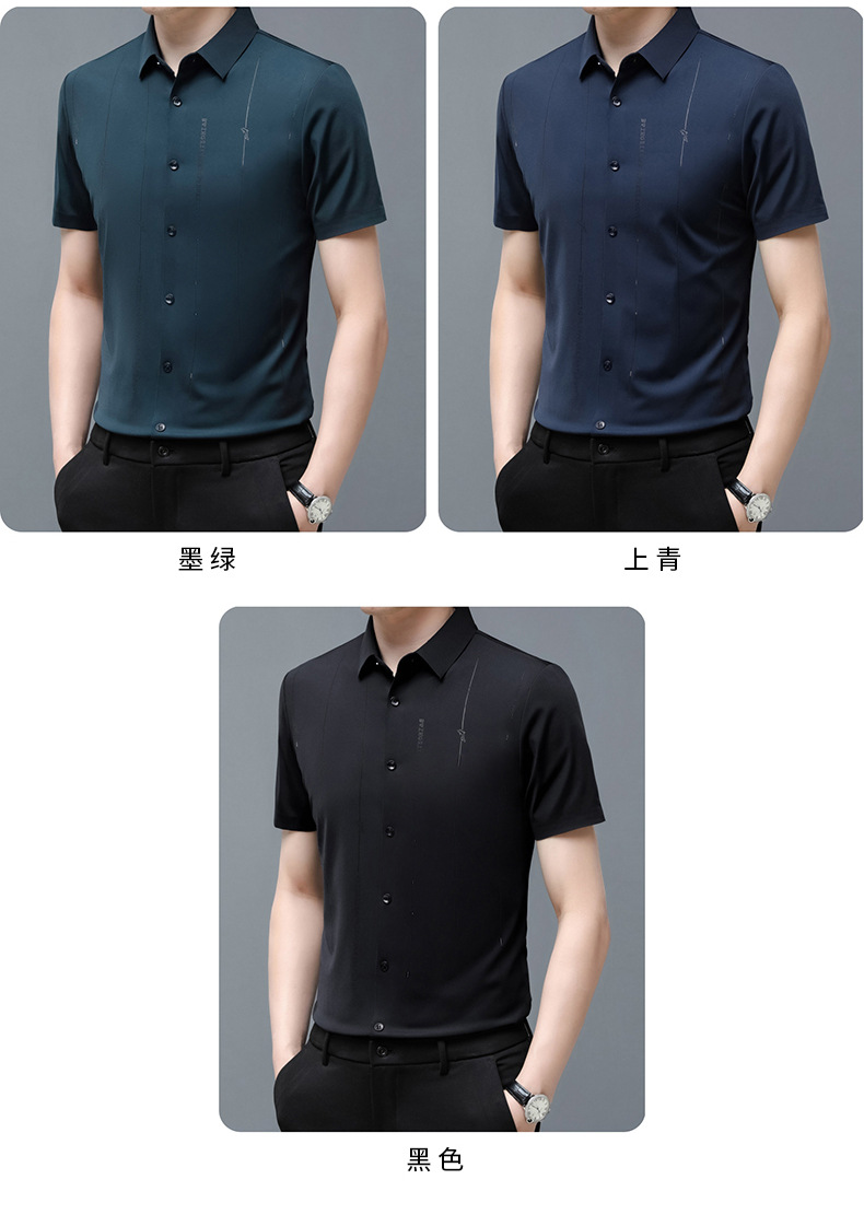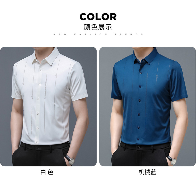 Áo sơ mi nam ngắn tay liền mạch mùa hè 2023 in hình đơn giản đàn hồi cao liền mạch phù hợp với áo sơ mi nam ngắn tay