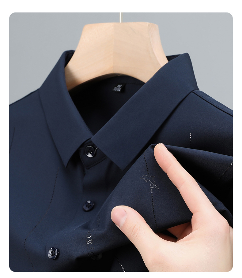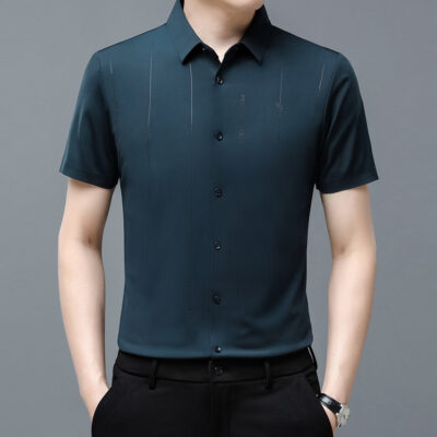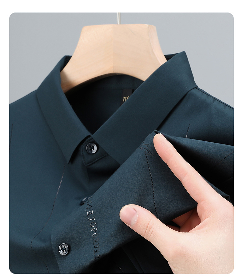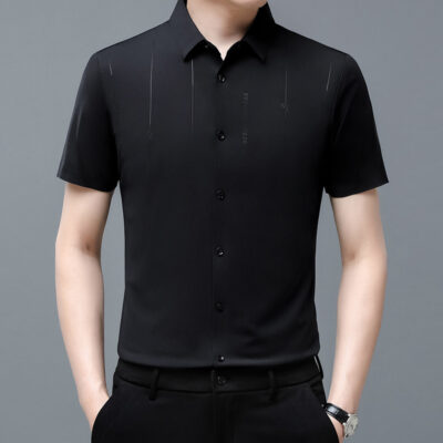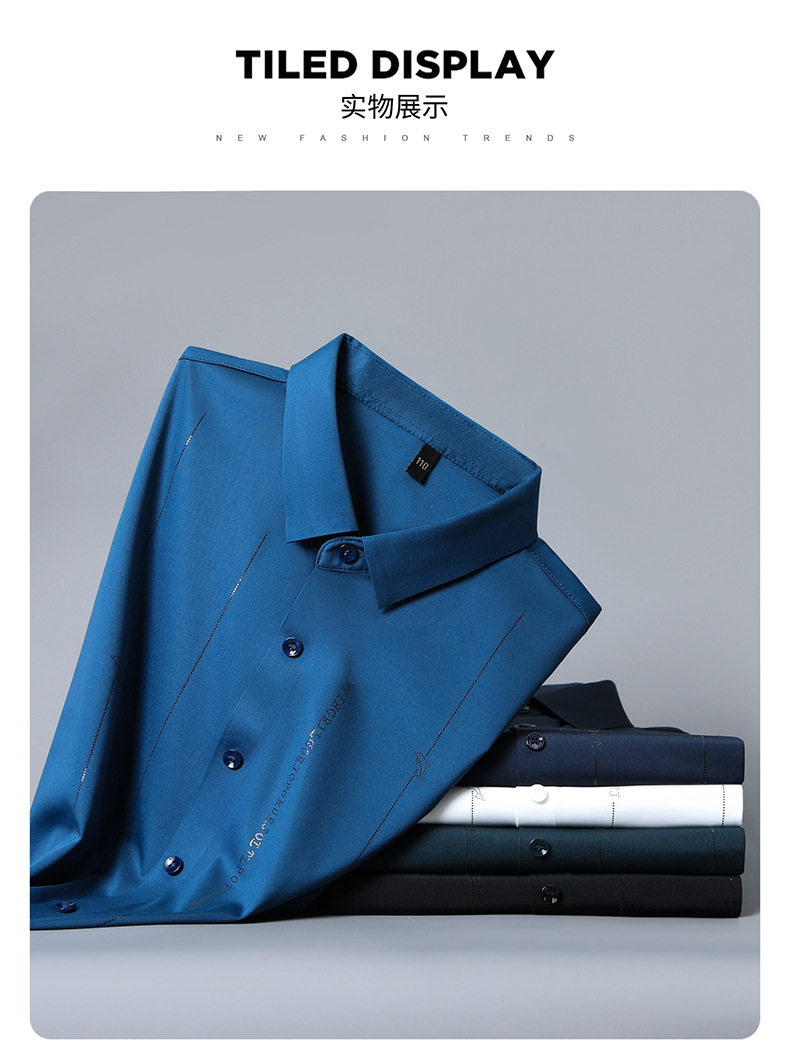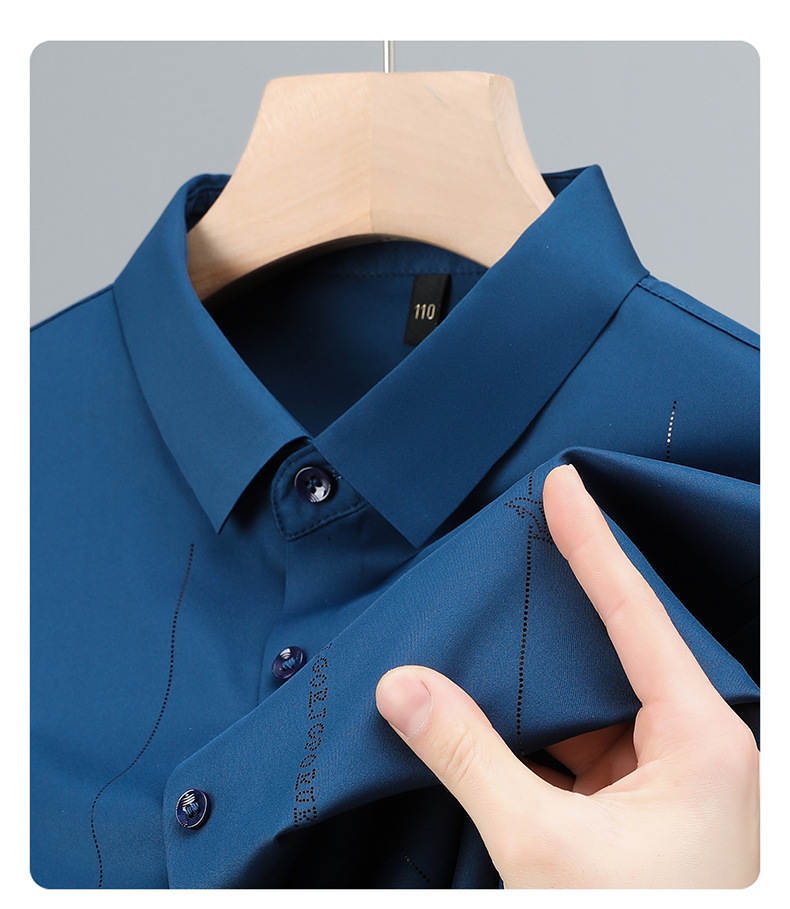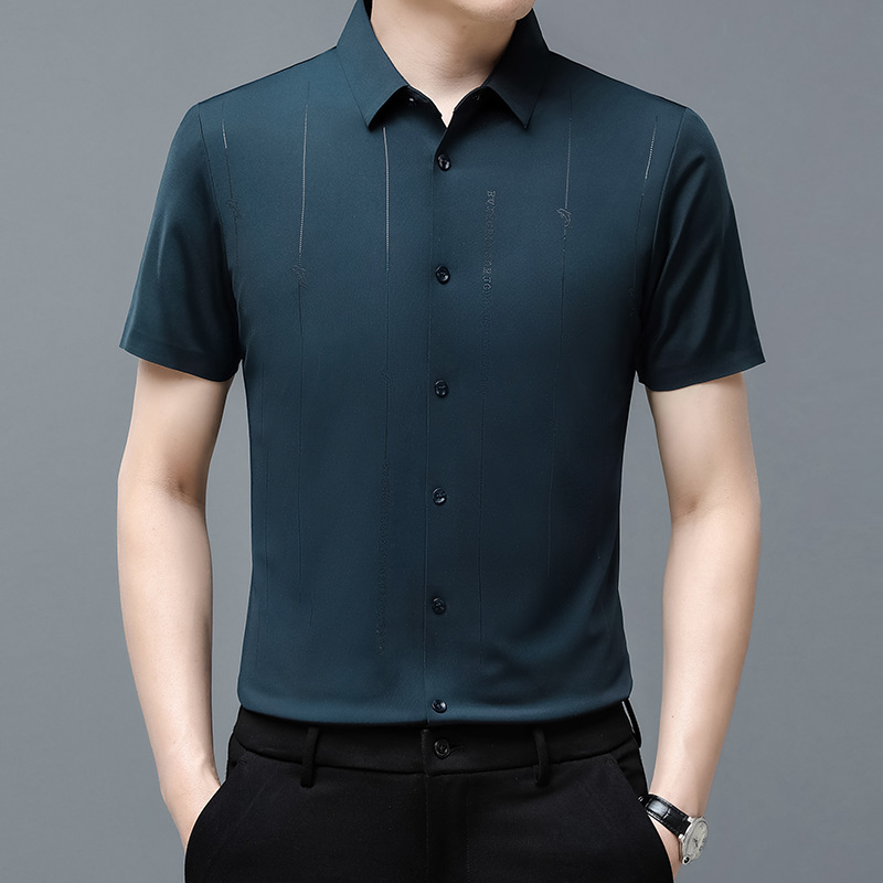 Áo sơ mi nam ngắn tay liền mạch mùa hè 2023 in hình đơn giản đàn hồi cao liền mạch phù hợp với áo sơ mi nam ngắn tay
