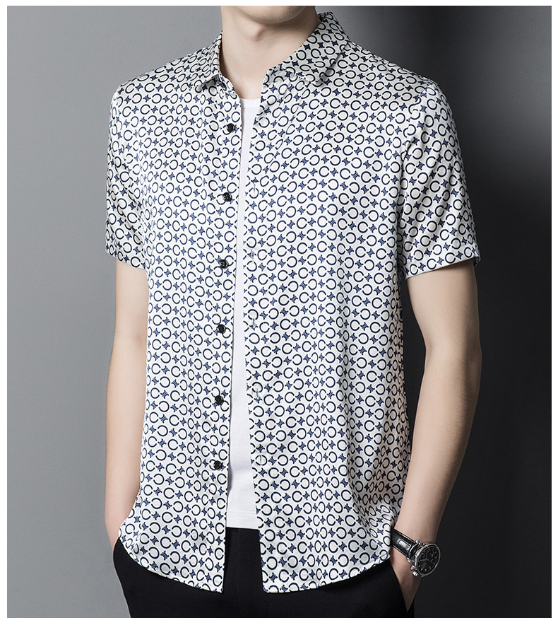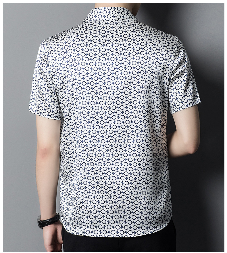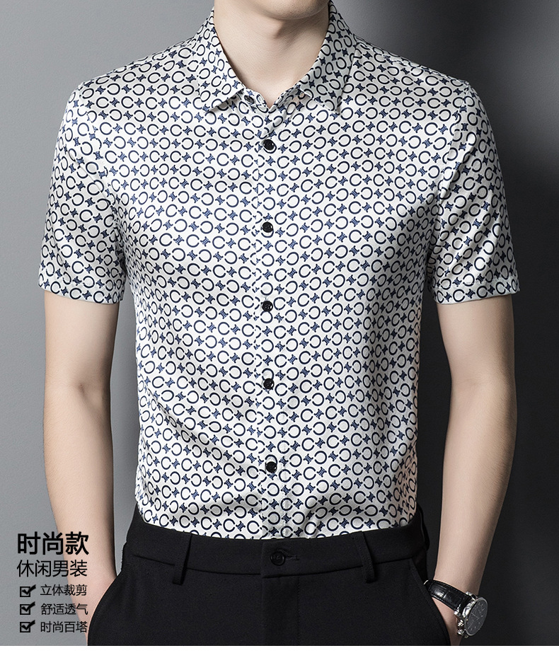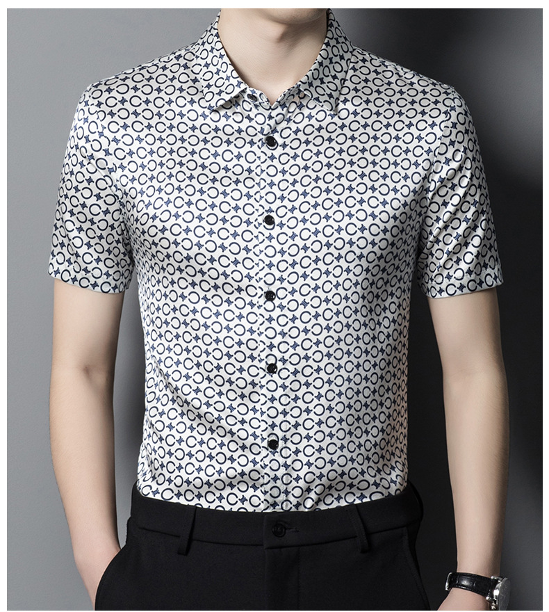 Áo sơ mi nam ngắn tay lụa dâu tằm cao cấp áo sơ mi nam lụa mùa hè phù hợp với tuổi trung niên áo sơ mi mùa hè của bố thời trang nam