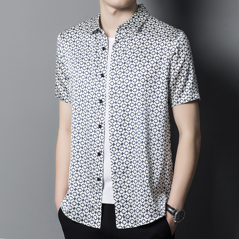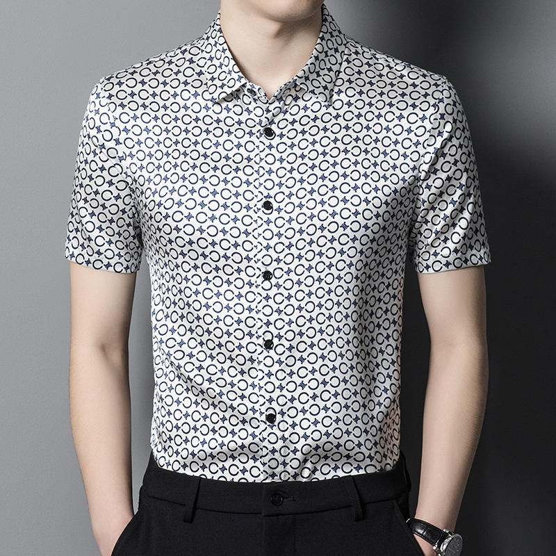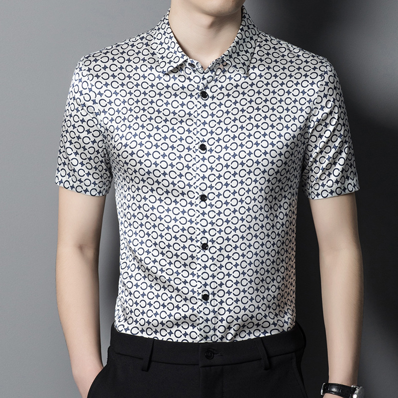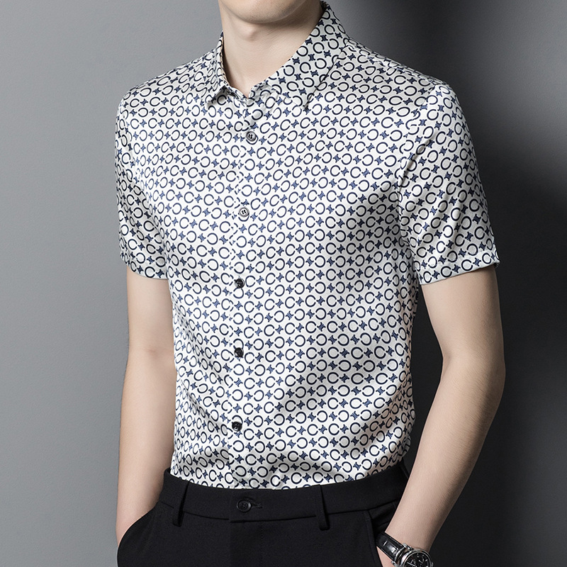 Áo sơ mi nam ngắn tay lụa dâu tằm cao cấp áo sơ mi nam lụa mùa hè phù hợp với tuổi trung niên áo sơ mi mùa hè của bố thời trang nam