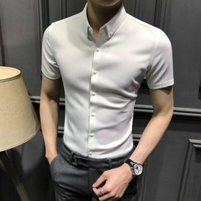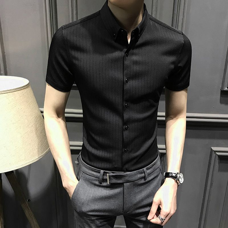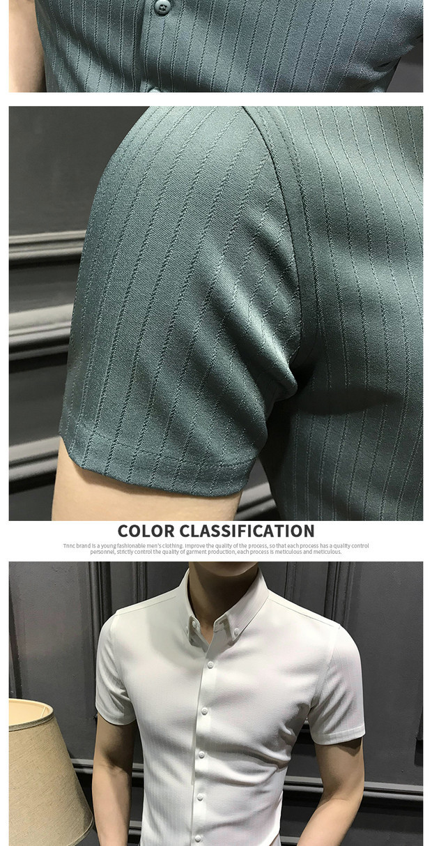Áo sơ mi nam ngắn tay mới 2023 mùa hè cao cấp kẻ sọc nam sơ mi nửa tay công sở dáng ôm vừa vặn không cần ủi