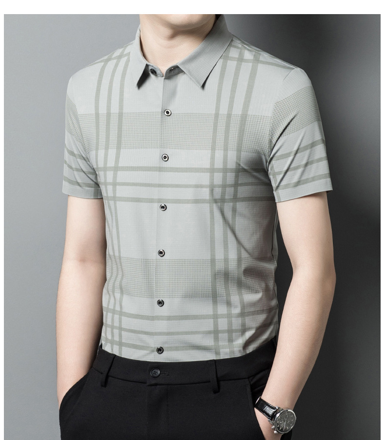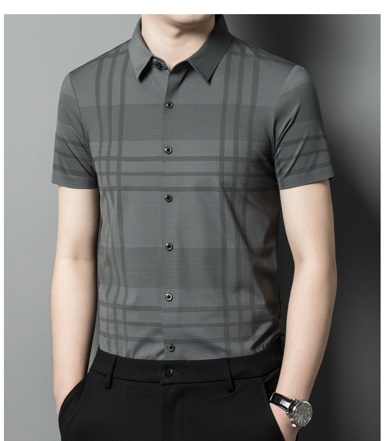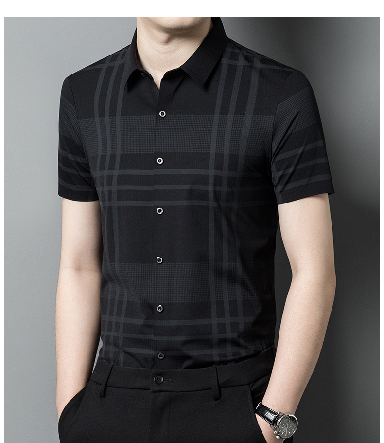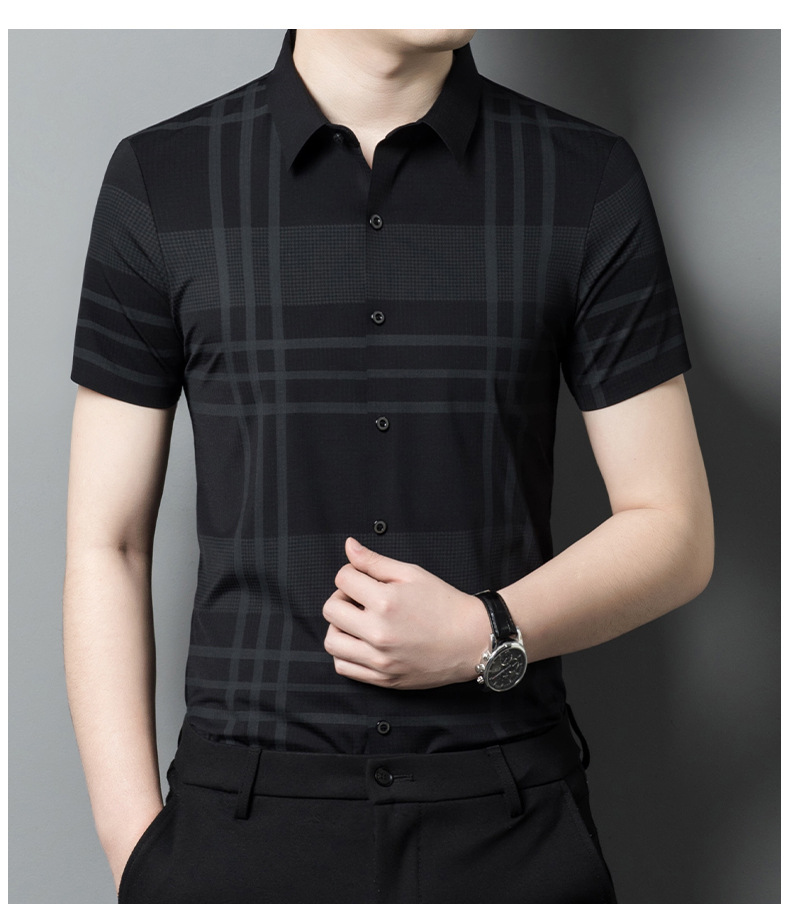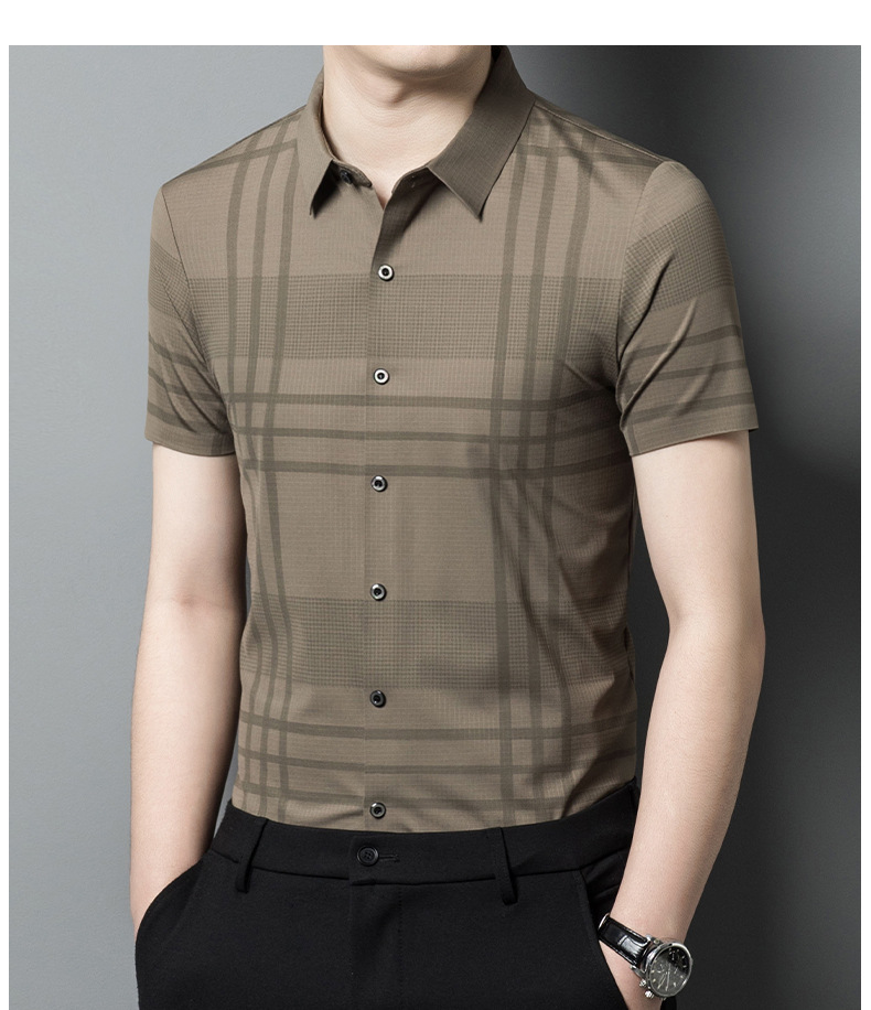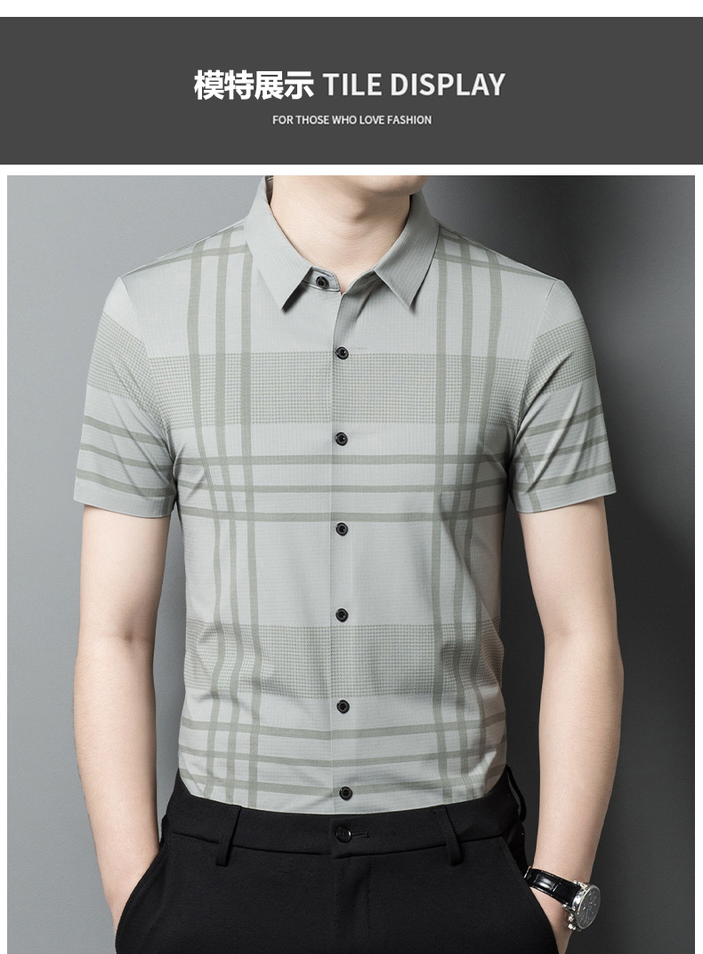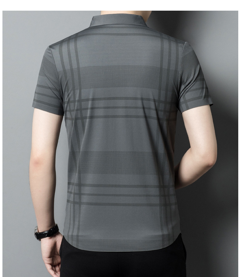 Áo sơ mi nam ngắn tay mùa hè 2023 có ve áo, áo thun sọc đơn giản, vị trí hàng đầu