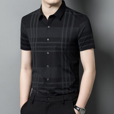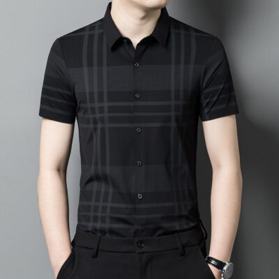 Áo sơ mi nam ngắn tay mùa hè 2023 có ve áo, áo thun sọc đơn giản, vị trí hàng đầu