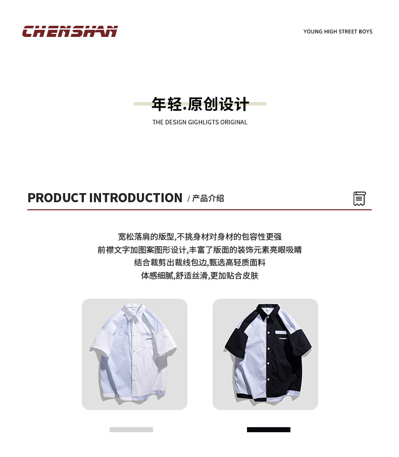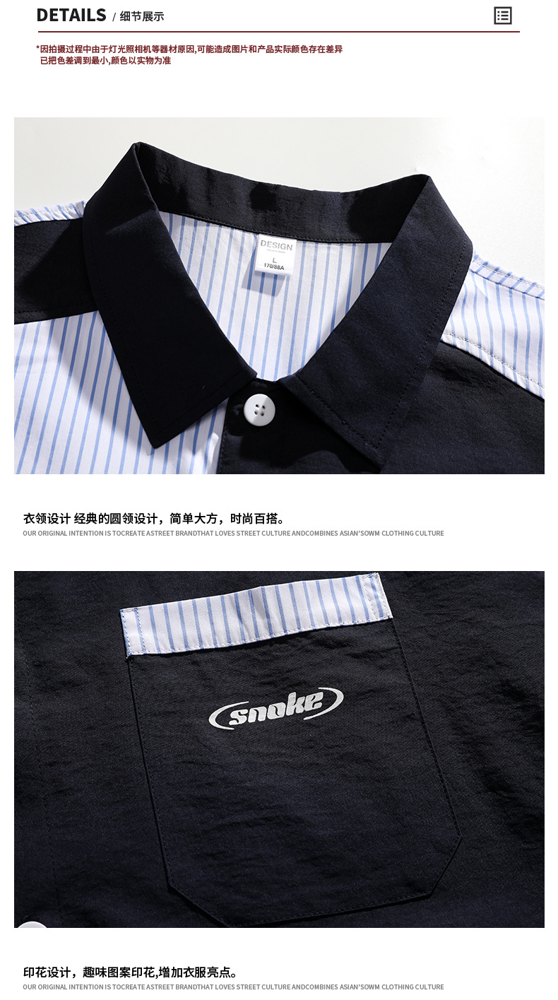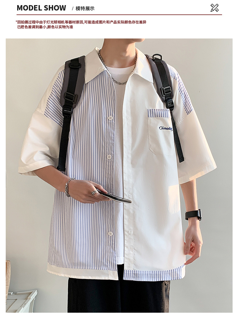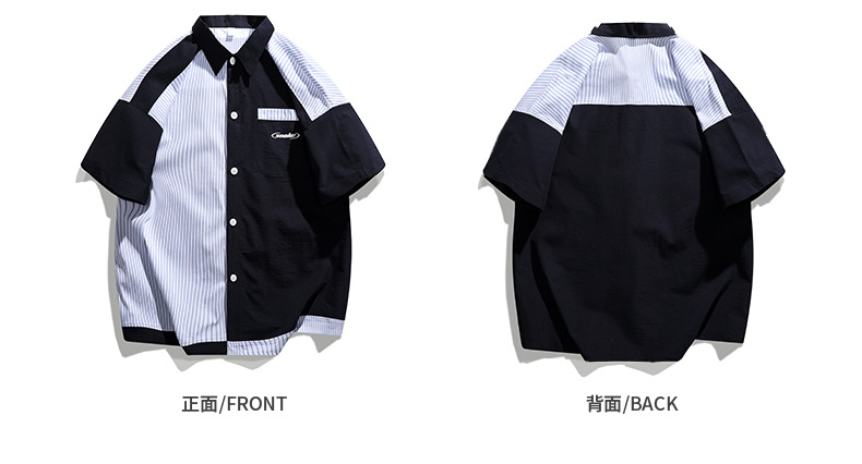 Áo sơ mi nam ngắn tay mùa hè 2023 mới cho nam giản dị nối dọc đường phố học sinh hợp thời trang áo sơ mi nửa tay áo khoác
