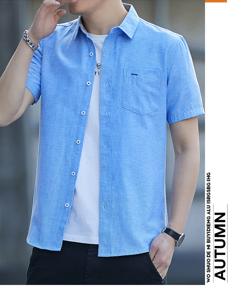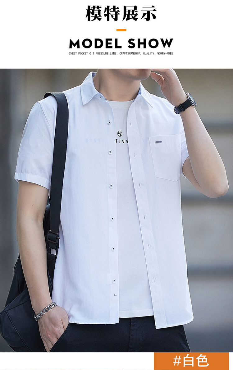 Áo Sơ Mi Nam Ngắn Tay Mùa Hè 2023 Mỏng Phần Kinh Doanh Túi Inch Quần Áo Cotton Nam Thời Trang Phù Hợp Với Áo Sơ Mi Thường Ngày
