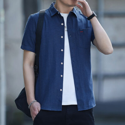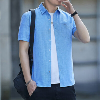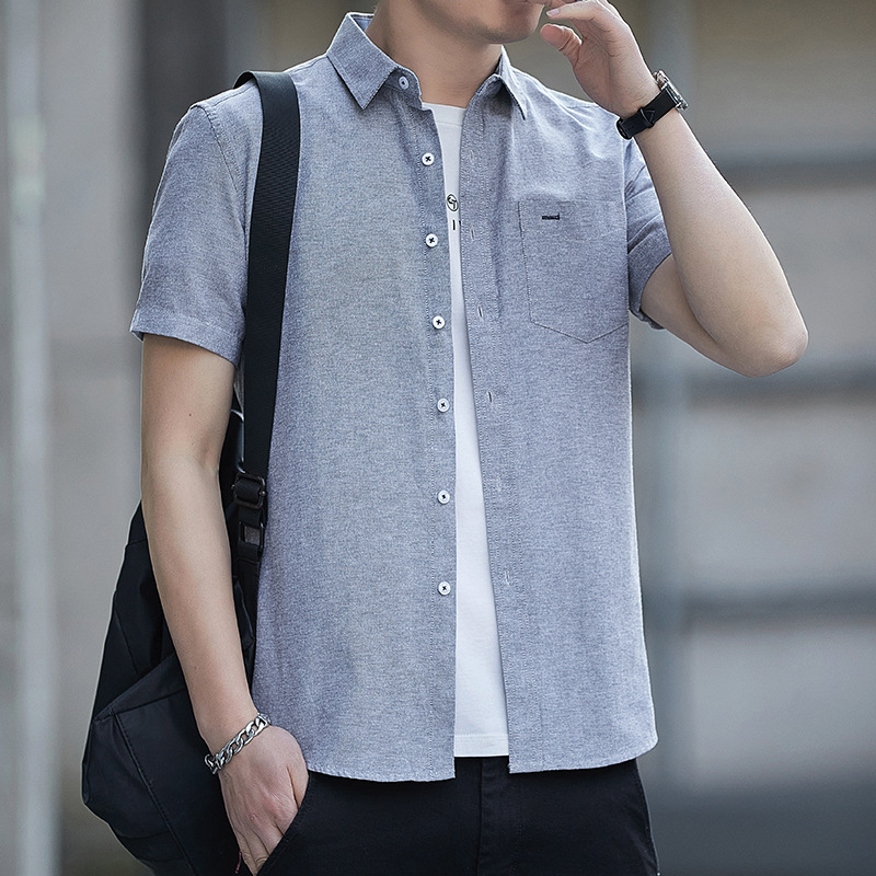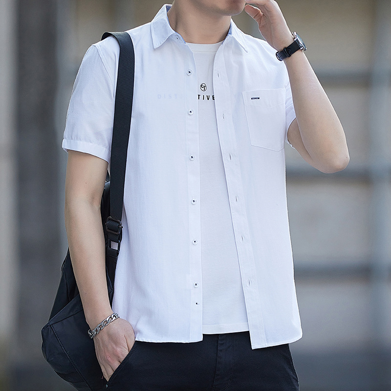 Áo Sơ Mi Nam Ngắn Tay Mùa Hè 2023 Mỏng Phần Kinh Doanh Túi Inch Quần Áo Cotton Nam Thời Trang Phù Hợp Với Áo Sơ Mi Thường Ngày