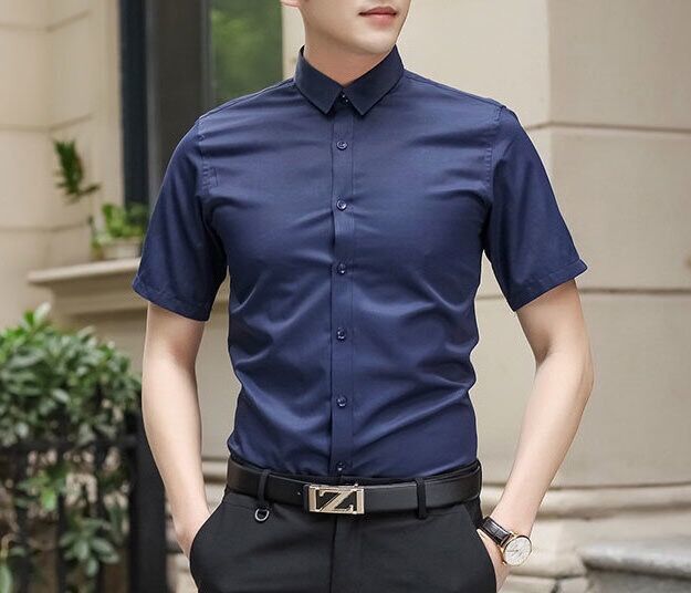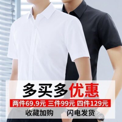 Áo sơ mi nam ngắn tay mùa hè áo sơ mi trắng mỏng mỏng kinh doanh áo sơ mi nam chuyên nghiệp áo liền quần màu đen