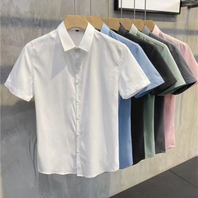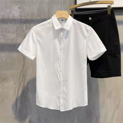 Áo sơ mi nam ngắn tay mùa hè lực lượng thiết kế cảm giác không cần ủi nam tự tu phiên bản Hàn Quốc thanh niên giản dị chuyên nghiệp áo sơ mi trắng bán buôn