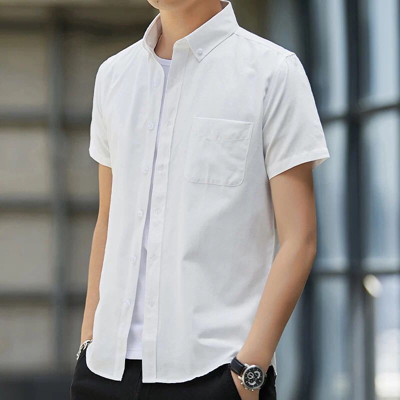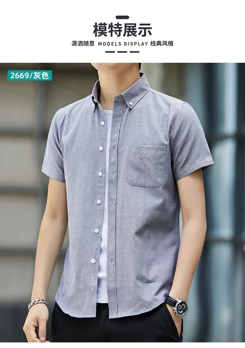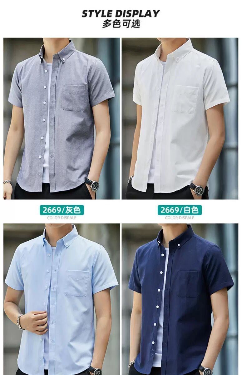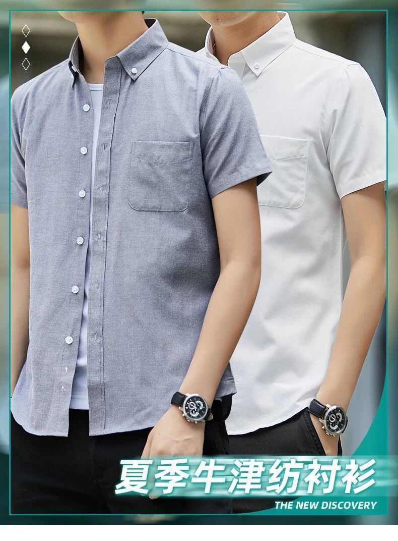 Áo sơ mi nam ngắn tay mùa hè Oxford quay nửa tay màu xanh hải quân áo sơ mi ôm vừa vặn màu trơn phần mỏng phiên bản thời trang của áo sơ mi Hàn Quốc